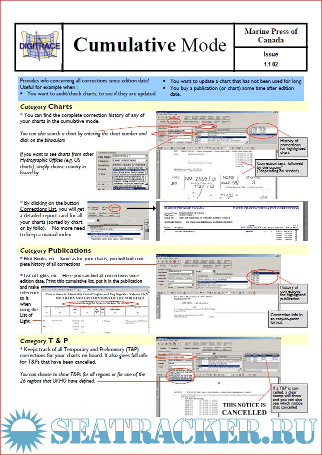 Description: DigiTrace is an authorized service of digital and paper tracing of chart corrections as published in weekly Notices to Mariners (NTM). The tracings allow the mariner to quickly and efficiently update the chart folio onboard ship. DigiTrace eliminates the time-consuming, laborious and tedious job of searching through each Notice to Mariners for applicable corrections.
