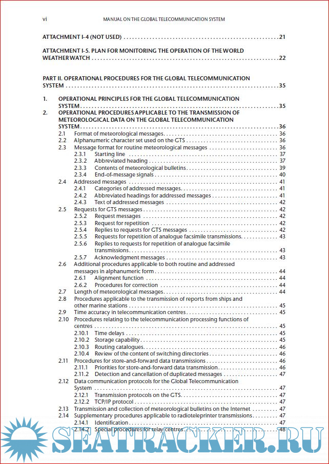 Year: 2017 Language: english Author: WMO Genre: Guide Publisher: World Meteorological Organization Edition: 2015 (Updated in 2017) ISBN: 978-92-63-10386-4 Format: PDF Quality: eBook Pages count: 198 Description: 1. The Manual on the Global Telecommunication System is issued in accordance with the decision of the Sixth World Meteorological Congress. 2. This Manual is designed: (a) To facilitate cooperation in respect of meteorological telecommunications between Members; (b) To specify obligations of Members in the implementation of the World Weather Watch (WWW) Global Telecommunication System (GTS); (c) To ensure uniformity and standardization in the practices and procedures employed in achieving (a) and (b) above. 3. The Manual contains the regulatory material for the WWW Global Telecommunication System. 4. The Manual forms part of the Technical Regulations and is referred to as Annex III to the Technical Regulations (WMO-No. 49). 5. A number of detailed guidelines in respect of meteorological telecommunication practices and procedures are included in attachments to the Manual.