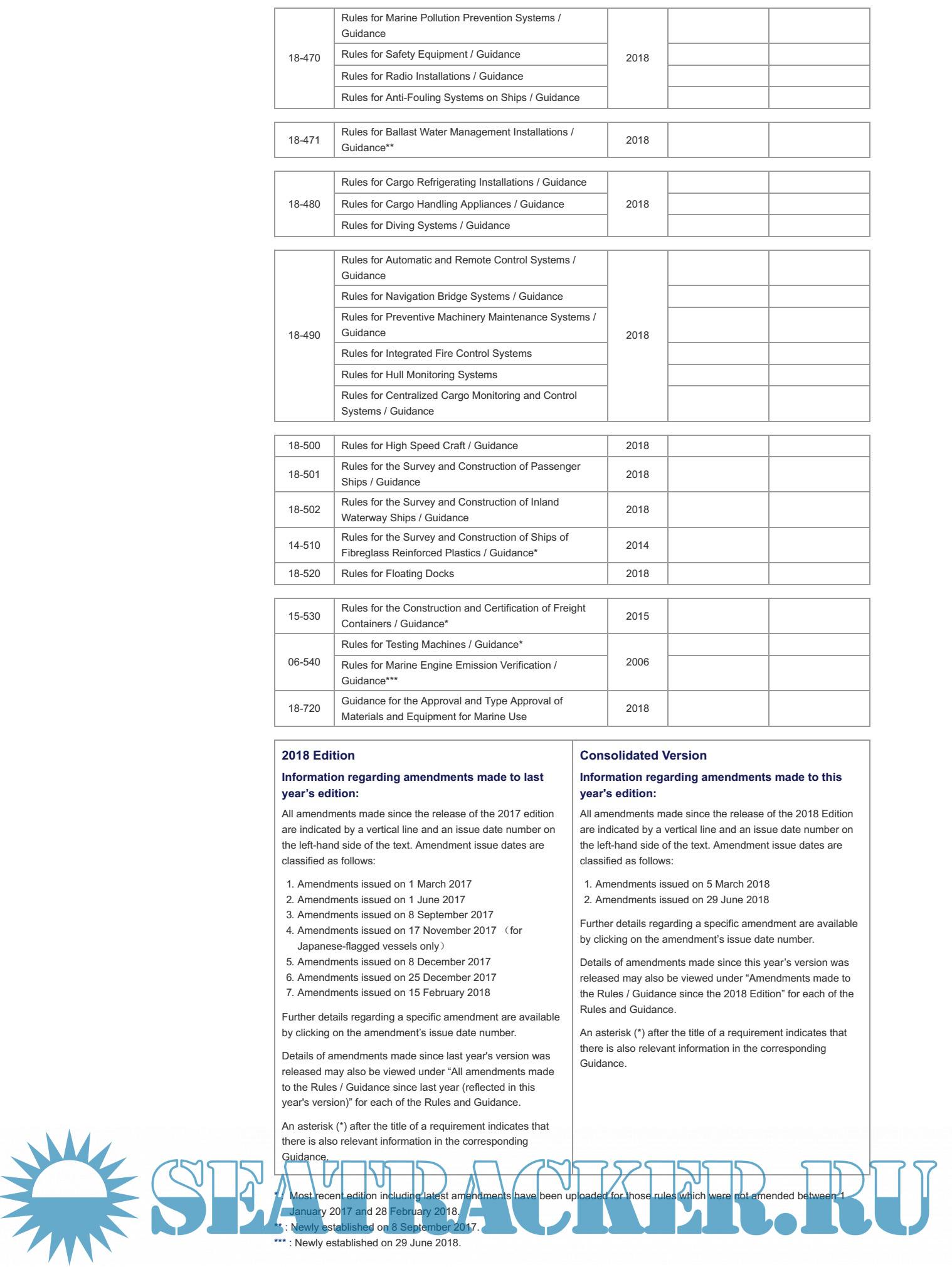 Year: 2018 Language: english Author: ClassNK Genre: Documentation Format: PDF Quality: eBook Pages count: Multiple Description: ClassNK is dedicated to ensuring the safety of life and property at sea, and the prevention of pollution of the marine environment. To achieve this mission ClassNK will: Focus on delivering the highest quality classification services, by the highest quality personnel, while maintaining its totally independent third party, non-profit status. Focus on the development of relevant rules, procedures and guidance, and maintain and develop its commitment to scientific and technological research and development. Maintain and develop its global operations in line with the needs of clients using its services. ClassNK has earned an outstanding reputation for its long-standing dedication to safeguarding life and property at sea and preventing marine pollution through the establishment of universally recognized standards for the design, construction and maintenance of ships and other marine structures. The principal work of the Society's expert technical staff is to undertake surveys to ensure that the rules which it has developed are applied to newbuildings and existing ships to ensure their safety. The rules cover not only hull structures, but also propulsion systems, electrics,electronic systems, safety equipment, cargo handling gear, and various other areas. ClassNK's surveyors work in shipbuilding and repair yards and at ports across the world, wherever they may be called upon to examine the condition of a ship.