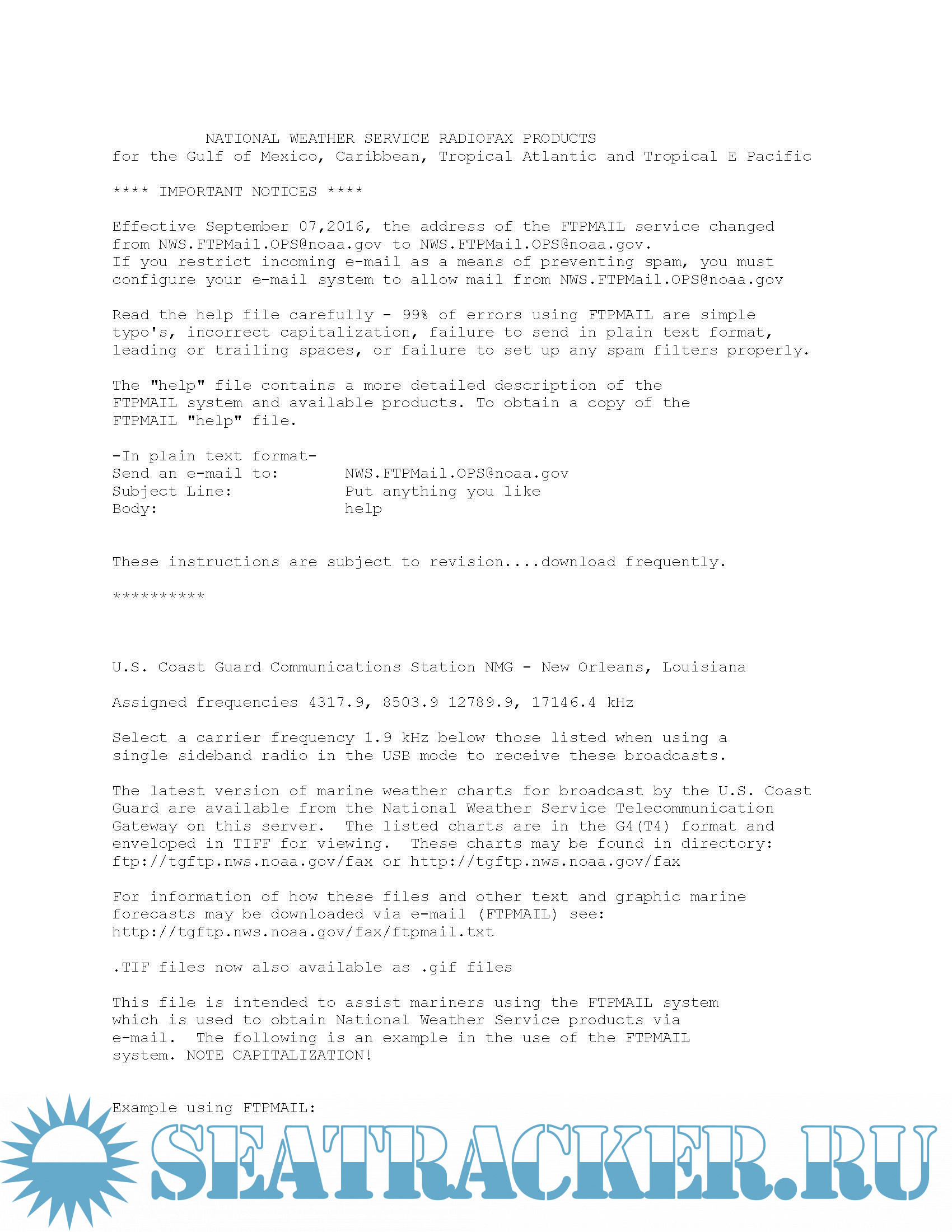 This document also includes information on how to obtain National Weather Service text forecasts, graphic forecasts, and marine observations via the Internet and e-mail (FTPMAIL). Mariners are highly encouraged to explore these options.