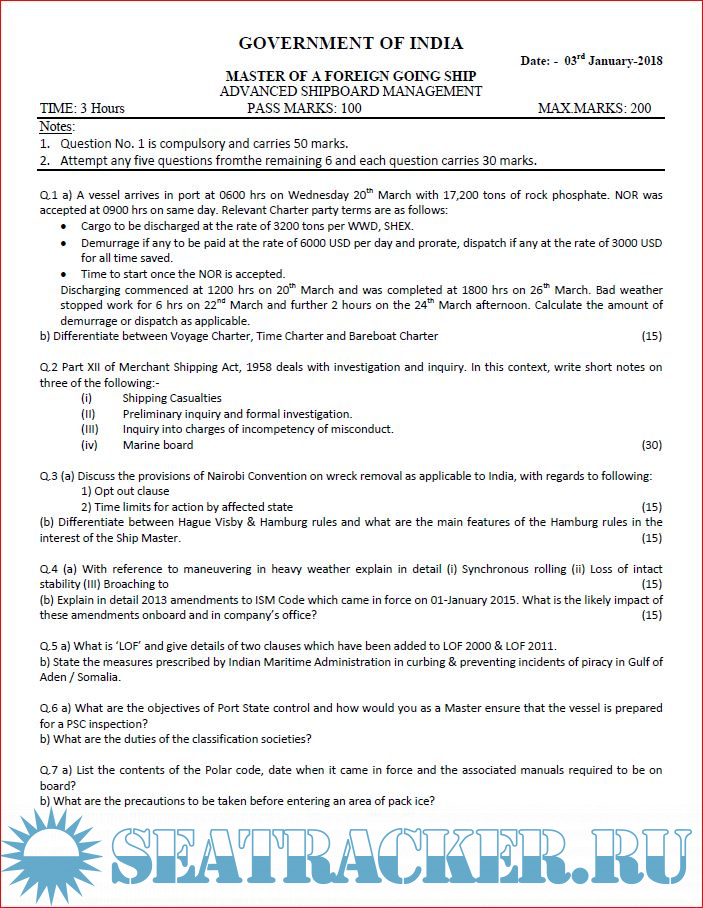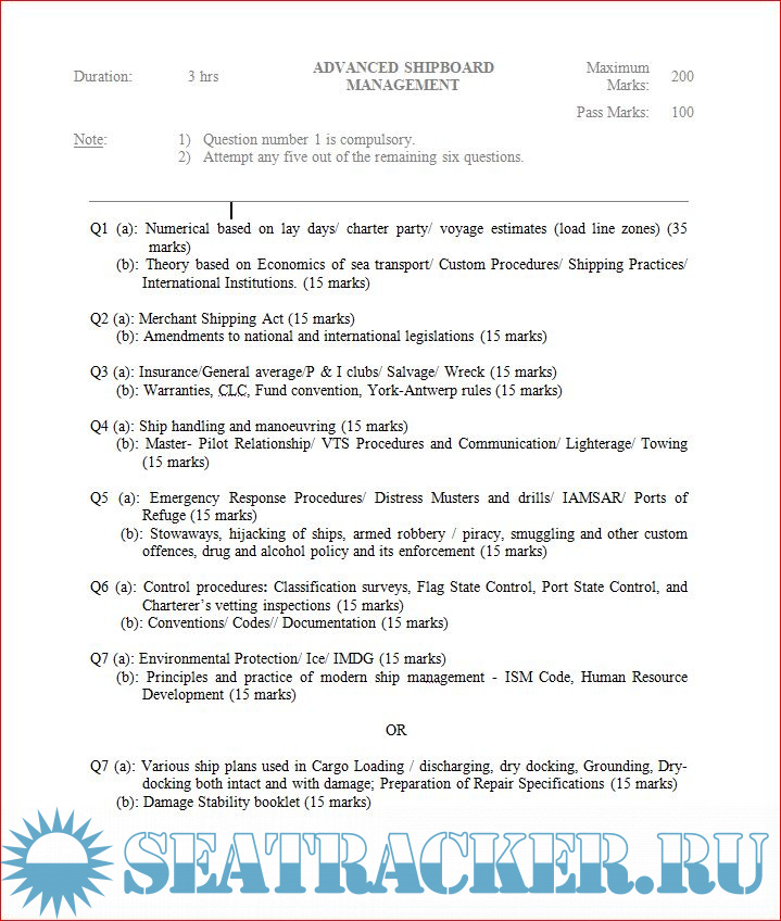 Question Paper Set for (ASM) Advanced Shipboard Management Writtens (September 2023) for…