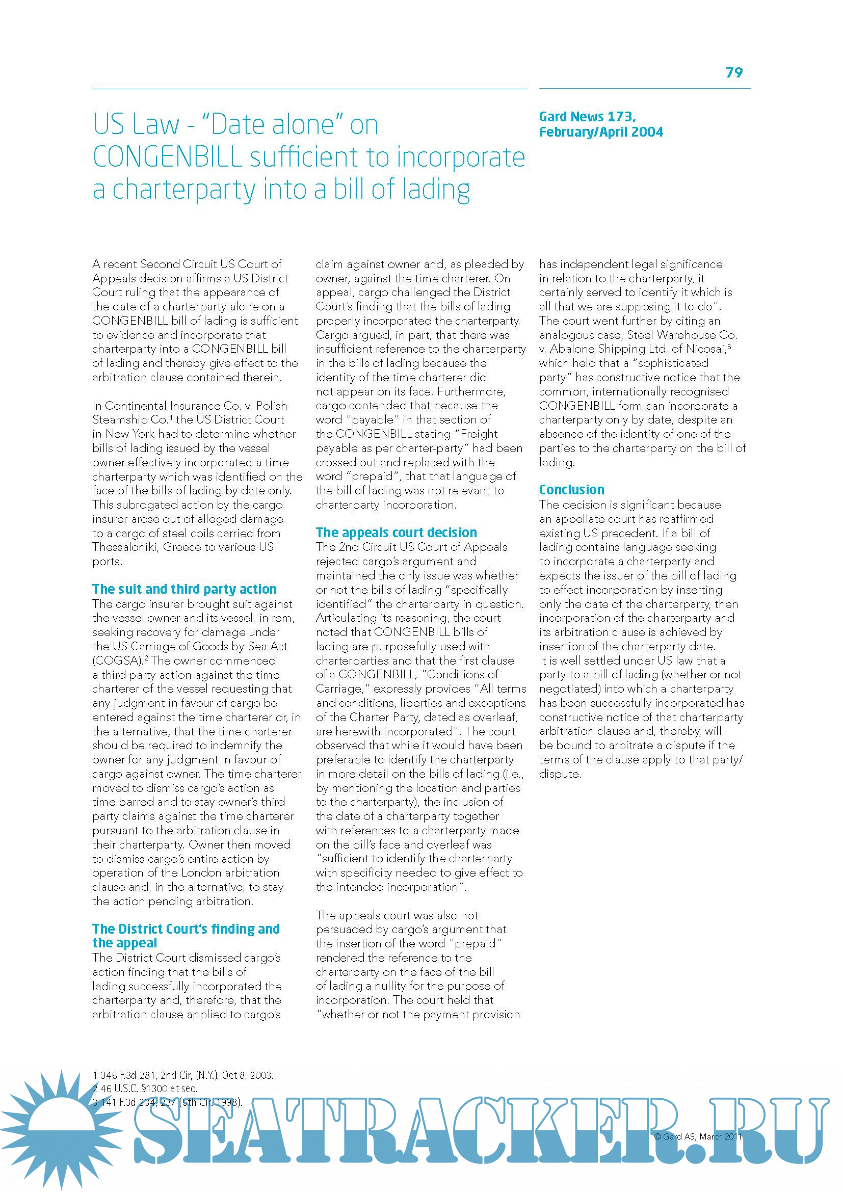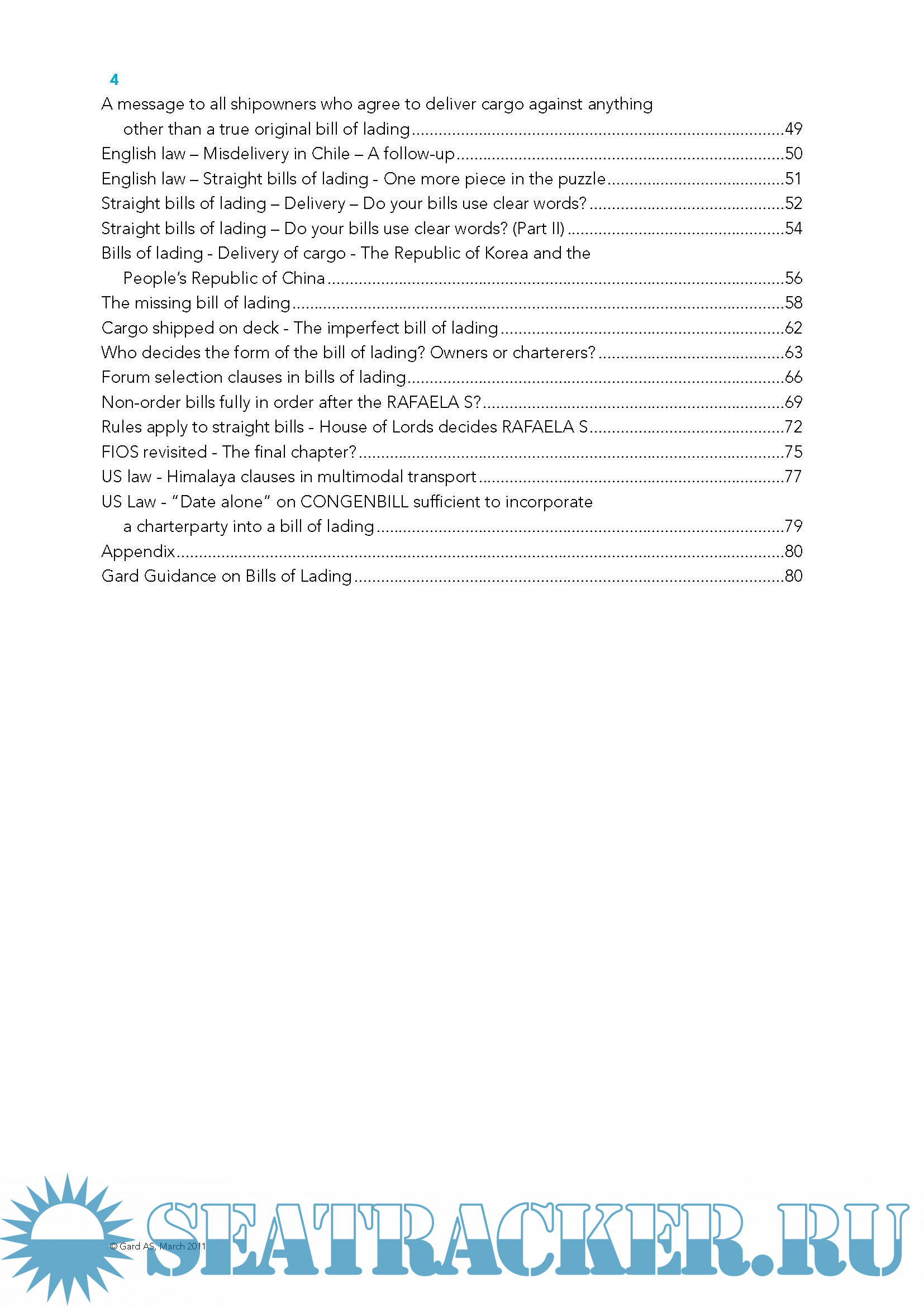 Year: 2011 Language: english Author: Gard P&I Genre: Guide Format: PDF Quality: eBook Pages count: 82 Description: This booklet contains a collection of loss prevention material relating to bills of lading and which has been published by Gard over the years. Gard - the P&I Club - has considerable experience of bill of lading issues both from claims handling as well as from dealing with Member enquiries. Experience indicates that even the simplest of mistakes or an oversight in a bill of lading can lead to complex and expensive problems at a later date. These issues are important considering that the Member’s P&I cover can often be at stake. Gard is committed to sharing its experience with others through the various loss prevention publications.