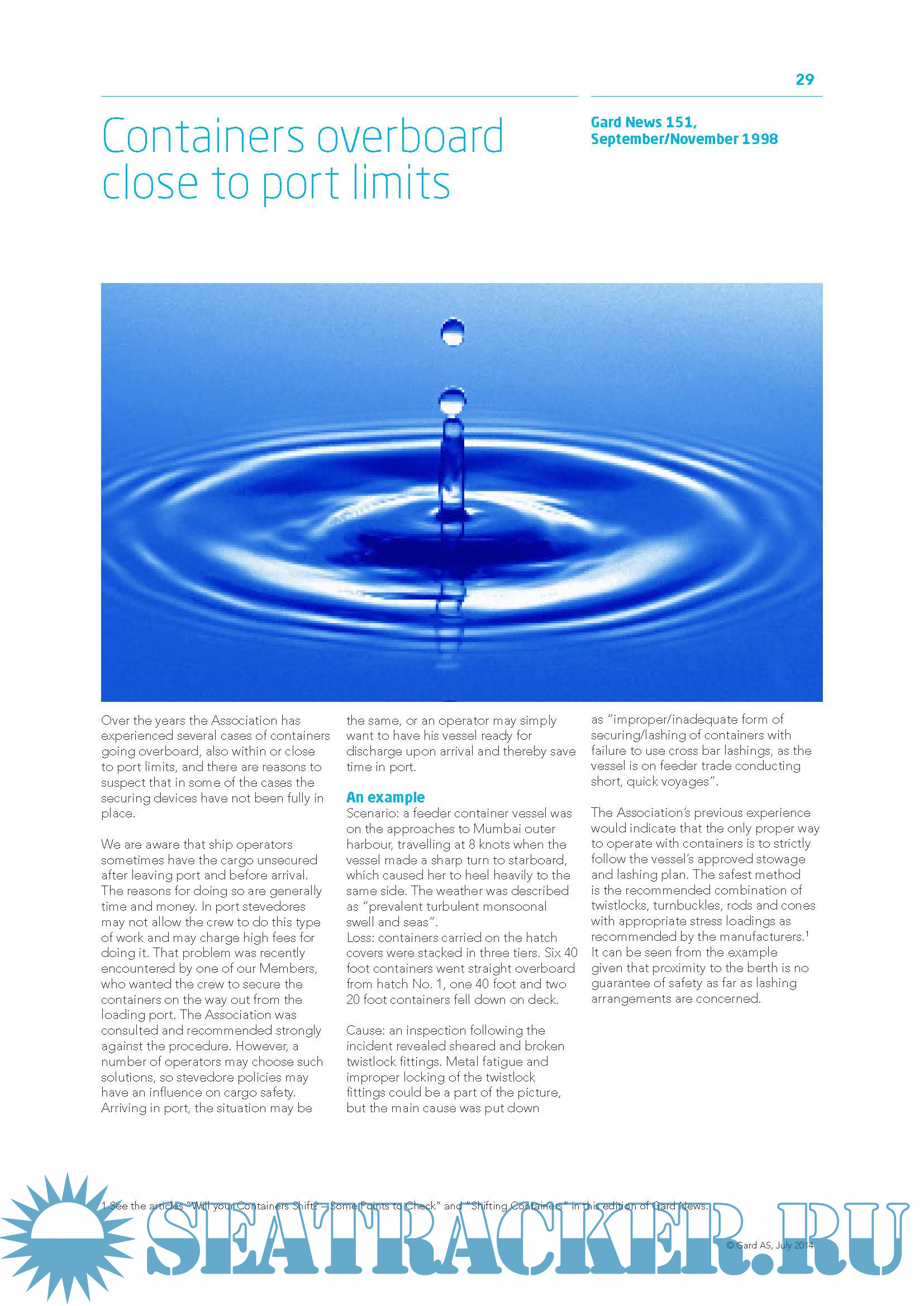Year: 2014 Language: english Author: Gard P&I Genre: Guide Format: PDF Quality: eBook Pages count: 50 Description: This booklet contains a collection of loss prevention material relating to the carriage of containers, which has been published by Gard over the years. Container cargo claims account for a large proportion of all cargo claims, both in terms of frequency and cost. This booklet contains material with numerous examples of incidents resulting in large container cargo claims.