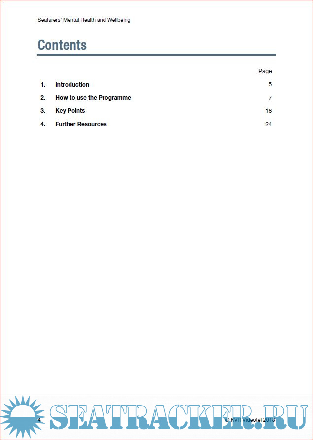 Description: This training package explores what seafarers can do to improve their mental health and wellbeing so that they can deal better with the challenges of life on board. The programme is intended for all crew, and the learning objectives are:
