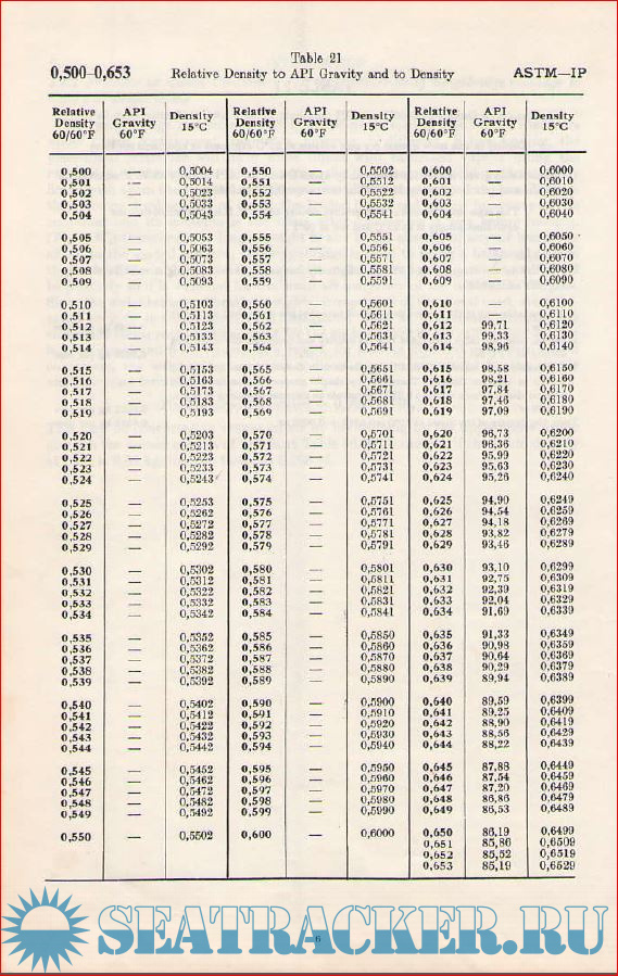Year: 1986 Language: english Author: Institute of Petroleum Genre: Guide Publisher: John Wiley & Sons ISBN: 0471909610 Format: PDF Quality: Scanned pages Pages count: 100 Description: Tables selected from: ASTM-IP petroleum measurement tables. Metric edition. 1953; with new explanatory matter and computer implementation procedures. Additional info: Density Range 0.500 to 0.653 kg/litre at 15°C