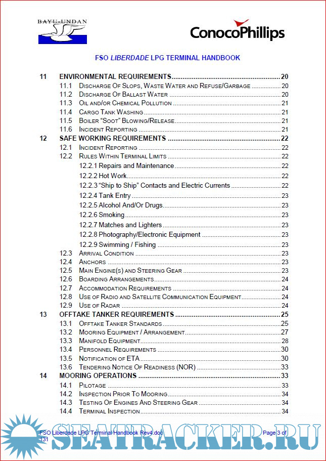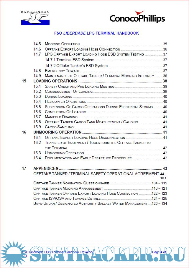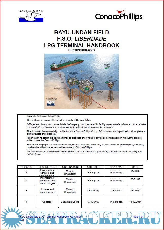 Year: 2014 Language: english Author: Conoco Phillips Genre: Handbook Format: PDF Quality: eBook Pages count: 90 Description: This Terminal Handbook has been prepared by ConocoPhillips (03-12) Pty Ltd, the Unit Operator of the Terminal, for the benefit of masters, owners and agents of Offtake Tankers. Additional info: Updated to Rev. 4