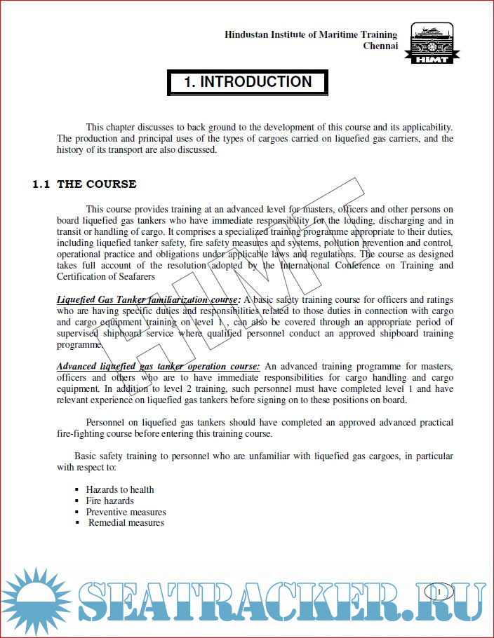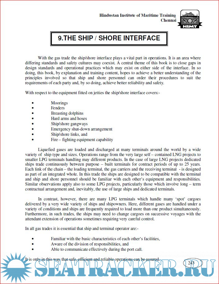 Year: 2007 Language: english Author: Hindustan Institute of Maritime Training Genre: Training courses Publisher: HIMT Format: PDF Quality: eBook Pages count: 295 Description: This course provides training at an advanced level for masters, officers and other persons on board liquefied gas tankers who have immediate responsibility for the loading, discharging and in transit or handling of cargo. It comprises a specialized training programme appropriate to their duties, including liquefied tanker safety, fire safety measures and systems, pollution prevention and control, operational practice and obligations under applicable laws and regulations. The course as designed takes full account of the resolution adopted by the International Conference on Training and Certification of Seafarers.
