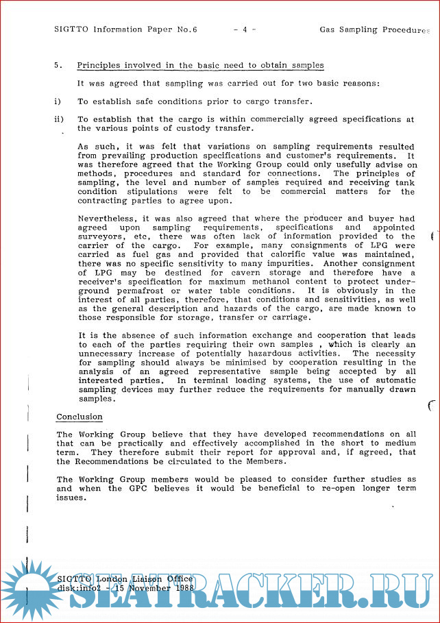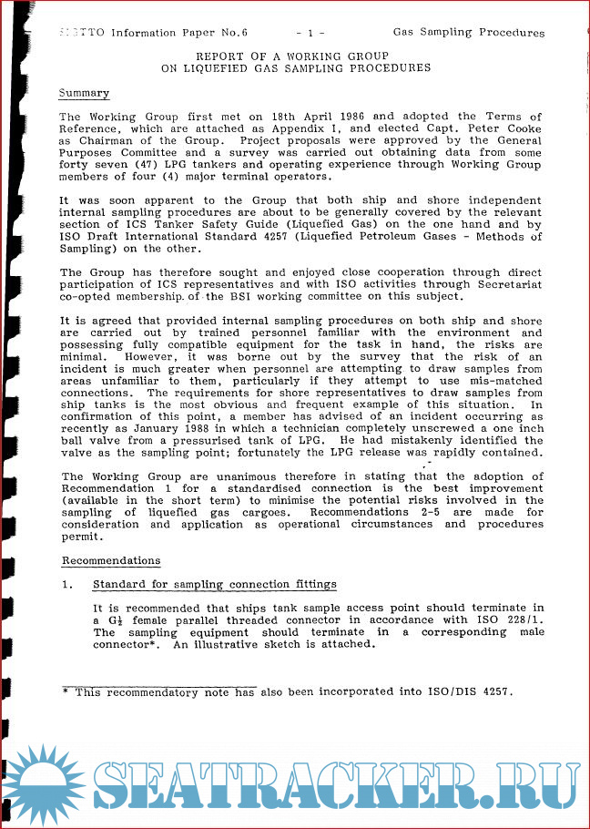 SIGTTO Information Paper no. 6 - Report of a Working Group on Liquefied Gas Sampling Procedures