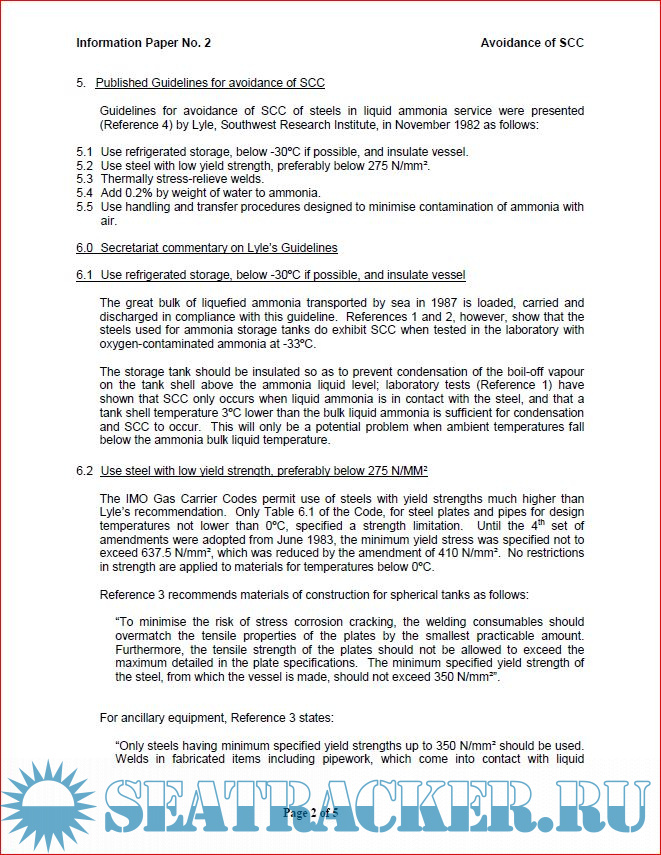 SIGTTO Information Paper no. 2 - Avoidance of Stress Corrosion Cracking (SCC) in Cargo Tanks, Reliquefaction Condensers And Condensate Return Pipework With Liquefied Ammonia Cargoes