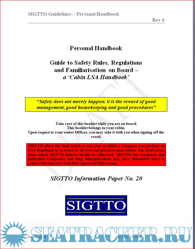 SIGTTO Information Paper no. 20 - Personal Handbook - Guide to Safety Rules, Regulations and Familiarisation on Board – A ‘Cabin LSA Handbook’