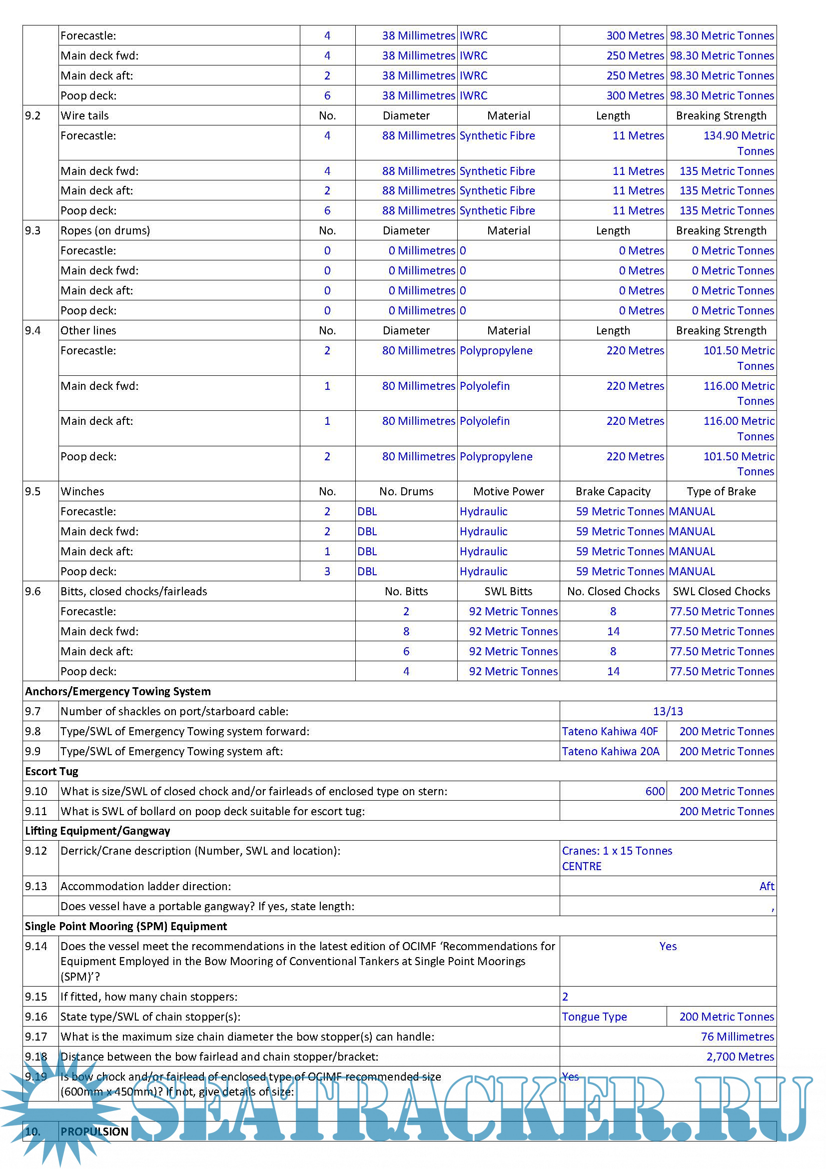 1. GENERAL INFORMATION 2. CERTIFICATES 3. CREW 4. FOR USA CALLS 5. SAFETY/HELICOPTER 6. COATING/ANODES 7. BALLAST 8. CARGO 9. MOORING 10. PROPULSION 11. SHIP TO SHIP TRANSFER 12. RECENT OPERATIONAL HISTORY