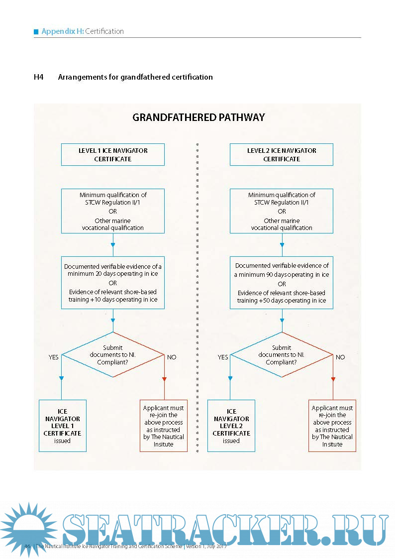 Year: 2017 Language: english Author: The Nautical Institute Genre: Guide Format: PDF Quality: eBook Pages count: 58 Description: The IMO has identified special considerations for ships operating in the remote and environmentally sensitive Polar regions. This has resulted in changes to legislation and requirements for vessels operating in these areas. The Nautical Institute supports this work and through the development of this Standard seeks to prepare Masters and navigating officers more effectively for navigating in areas of ice. The Nautical Institute has drawn upon expertise in the training and operational maritime communities to develop this Standard, which seeks to codify the training requirements for those navigating in ice-infested waters. This Standard sits alongside and seeks to complement work, especially by the IMO, in areas such as STCW and the Polar Code.