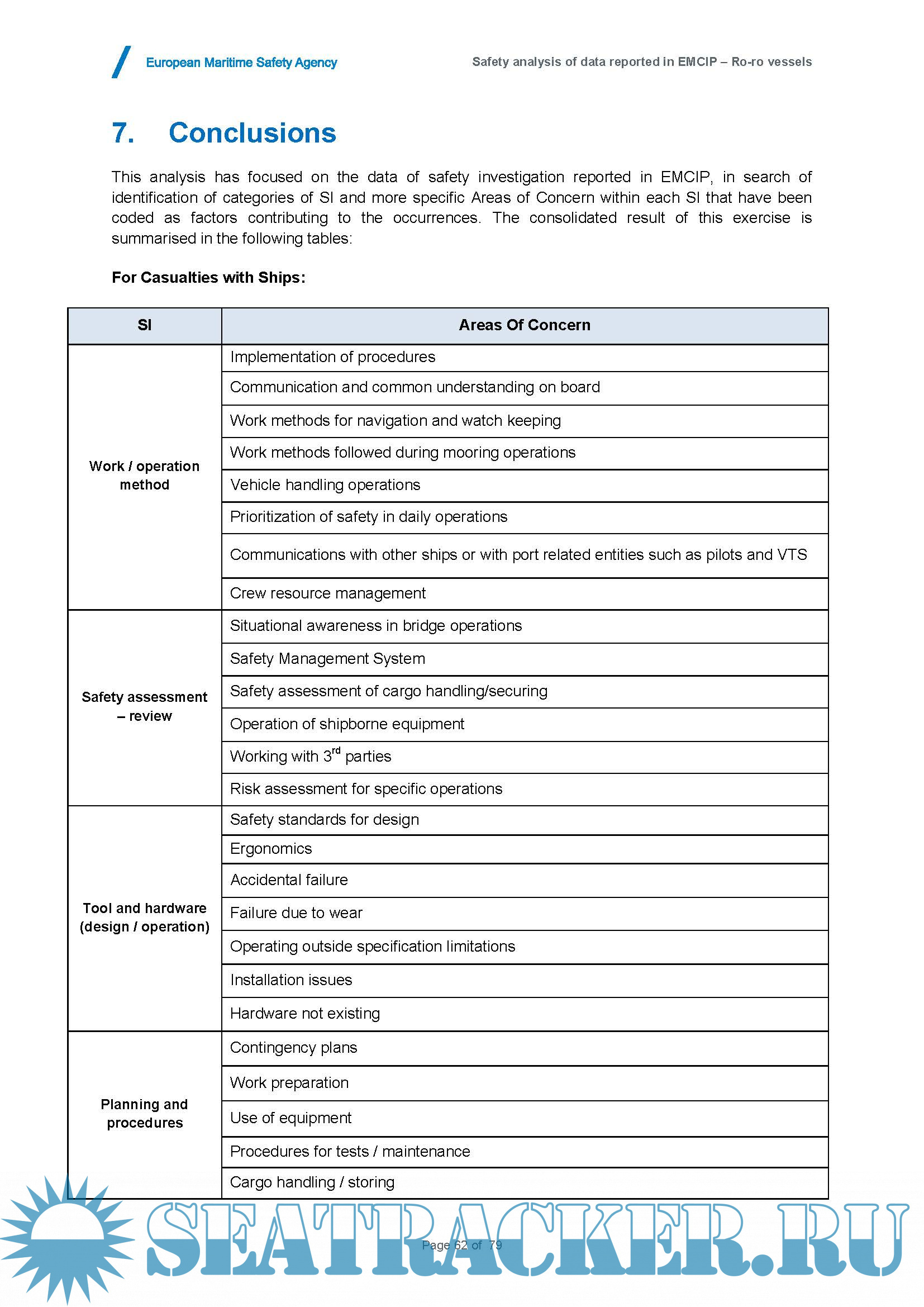 Safety analysis of data reported in EMCIP – Analysis on Marine Casualties and Incidents Involving Ro-Ro Vessels