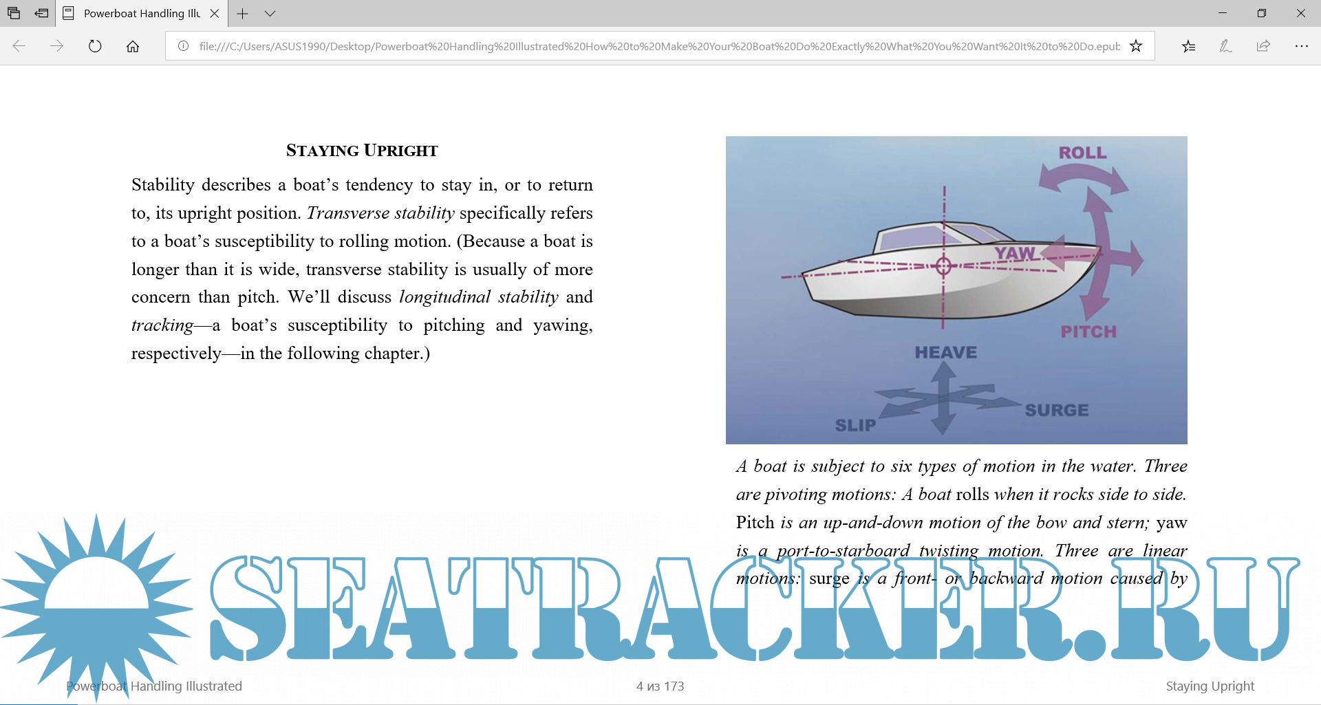 "Powerboat Handling Illustrated" is intended to ease your learning and convert what could be a stressful experience into an enjoyable one. Boat handling is a dynamic, interactive process, and a picture is worth a thousand words, so this book takes a highly visual approach. It divides the subject of boat handling into its logical components and provides the necessary background information for each situation.