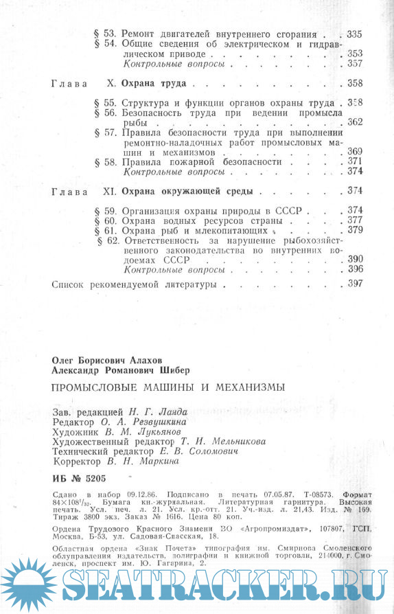 Описание: Изложены сведения по устройству и эксплуатации орудий лова. Дано описание промысловых машин и механизмов. Основное внимание уделено средствам механизации рыболовства на внутренних водоемах. Рассмотрены устройство приводов машин и механизмов, вопросы технического обслуживания и ремонта промысловых машин и их привода.