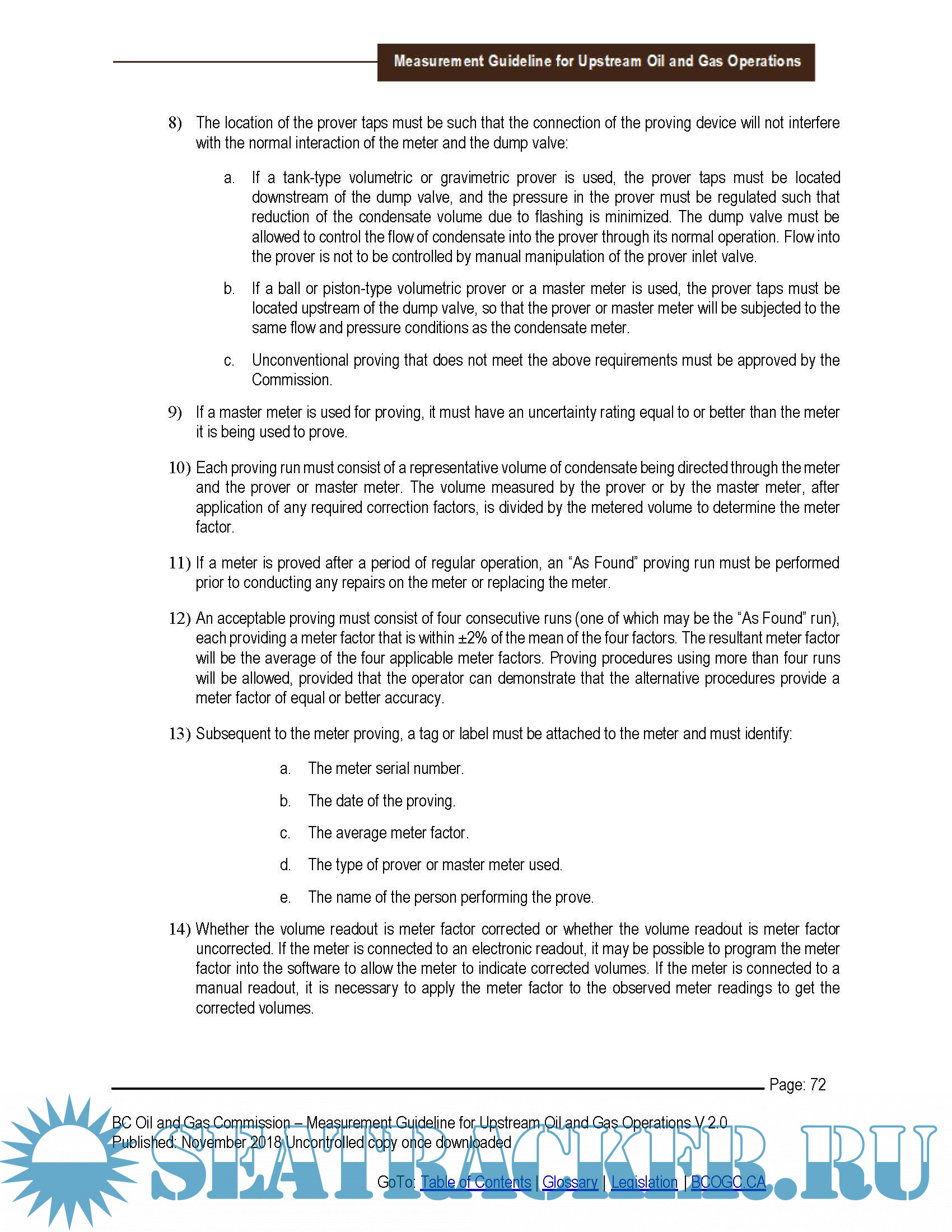 Year: 2018 Language: english Author: BC Oil and Gas Commission Genre: Manual Format: PDF Quality: eBook Pages count: 411 Description: In this manual, the term “measurement” is used to include measurement, estimation, accounting, and reporting. While measurement allows the determination of a volume, accounting and reporting are integral components of measurement in that after a fluid volume is “measured”, mathematical procedures (accounting) and/or estimation may have to be employed to arrive at the desired volume to be “reported”. This Guideline is not intended to take the place of the applicable legislation. Adherence to the standards and practices in this Guideline are considered an effective way for permit holders to achieve compliance with the applicable regulatory requirements relating to measurement. Deviation from these standards and practices will be evaluated on their demonstrated effectiveness, in accordance with the objectives for measurement set out in this Guideline. Permit holders may choose to include some or all of this Measurement Guideline into their own internal standards and practices. To facilitate such adoption, the guidance contained in this Guideline has been written in normative (or mandatory) language.