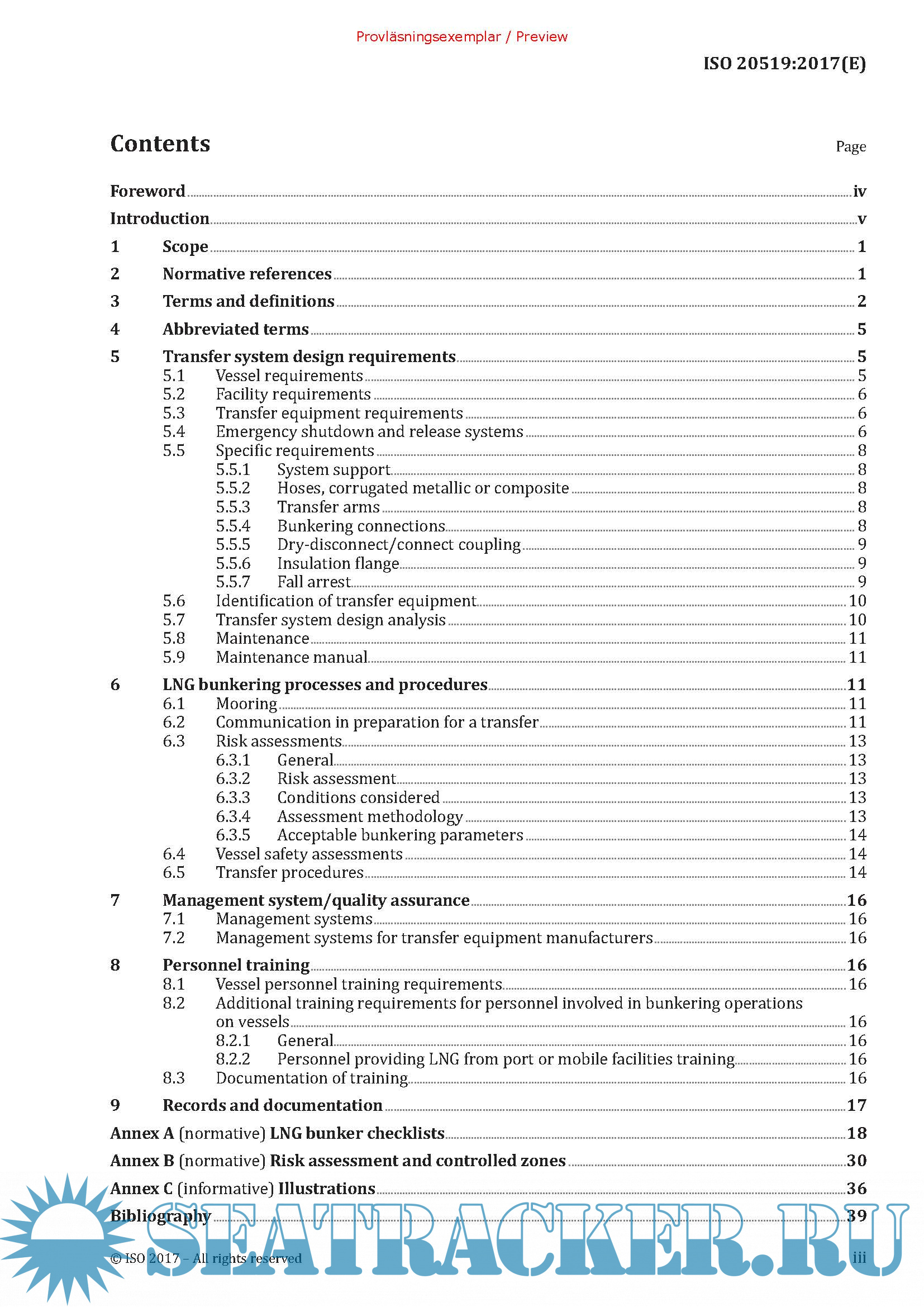 Ships and marine technology, Specification for bunkering of liquefied natural gas fuelled vessels, First edition (ISO 20519)