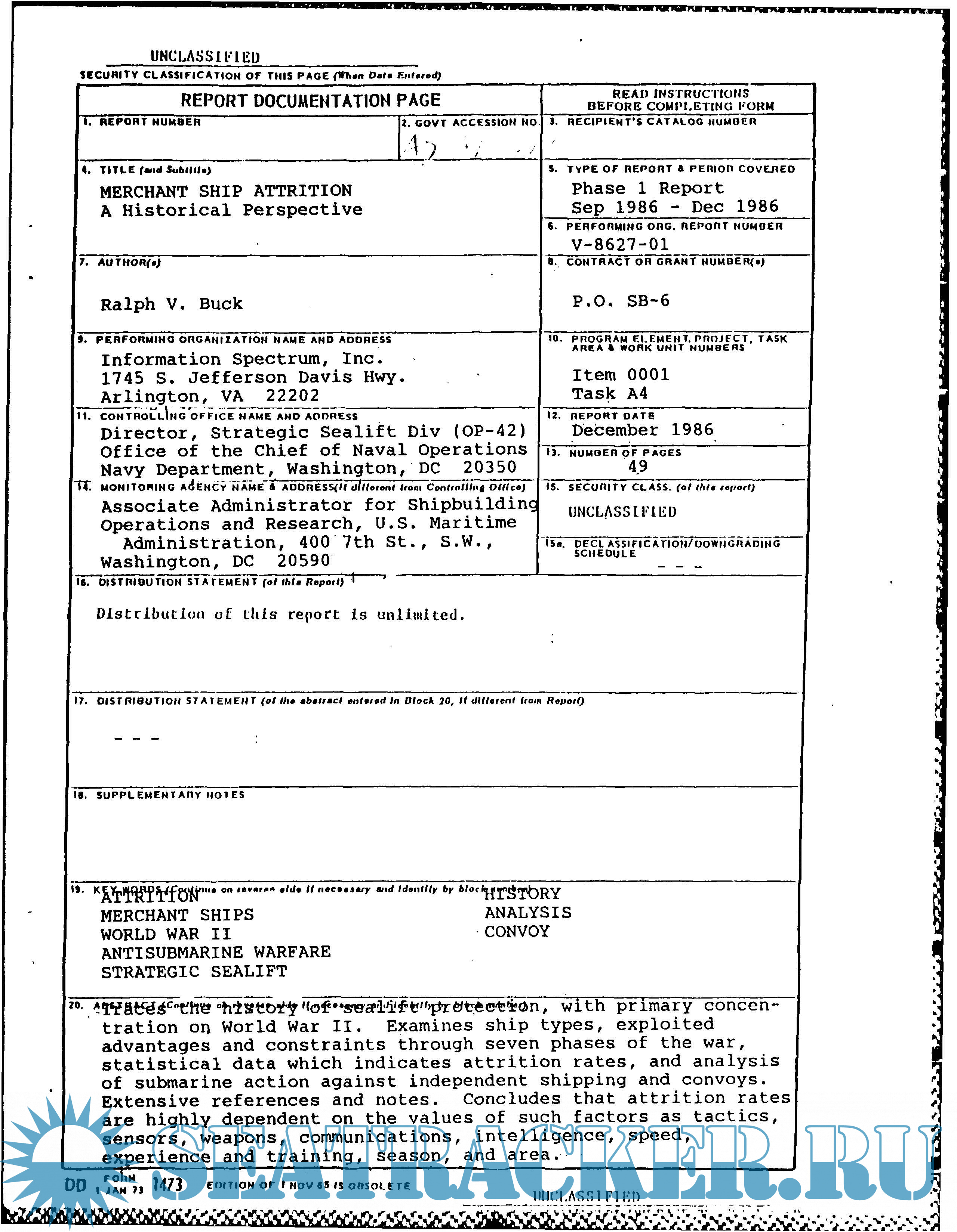 Year: 1986 Language: english Author: Information Spectrum Genre: History Format: PDF Quality: Unknown Pages count: 51 Description: War is dynamic, with each party to the conflict seeking an advantage to achieve his own ends, frustrate those of the enemy, decisively defeat or demoralize the enemy's battle forces, or prevent the enemy from gaining a decisive advantage. An anti- SLOC campaign is basically a war of attrition, except in a few cases of vital, timely, or irreplaceable military cargo. It presumes a strategy which makes provisions for a long, drawn-out struggle involving the classic move and countermove of tactics, technology, and forces.