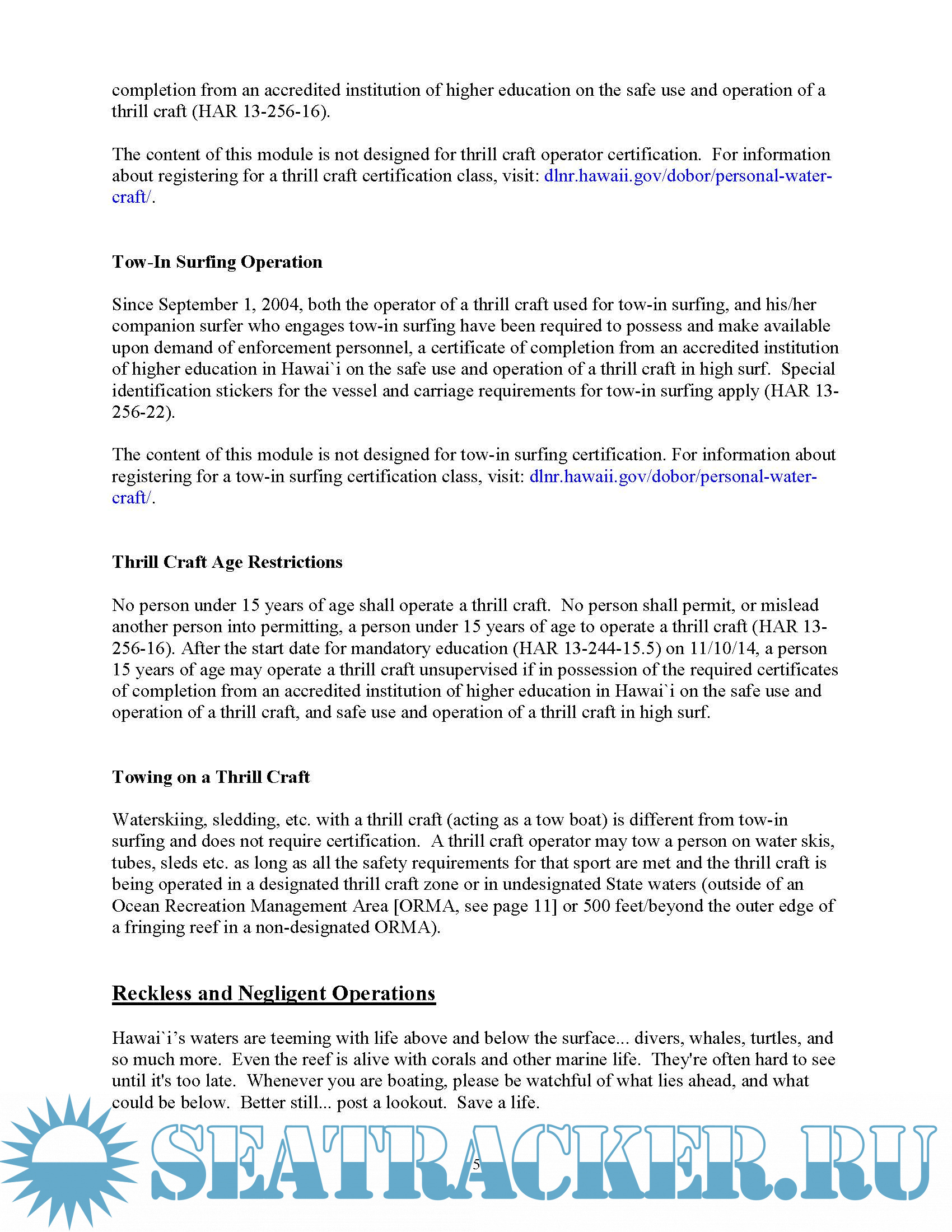 Hawai`i Boating Law Basics, State Specific Boating Rules and Regulations for Hawai`i, Student Manual