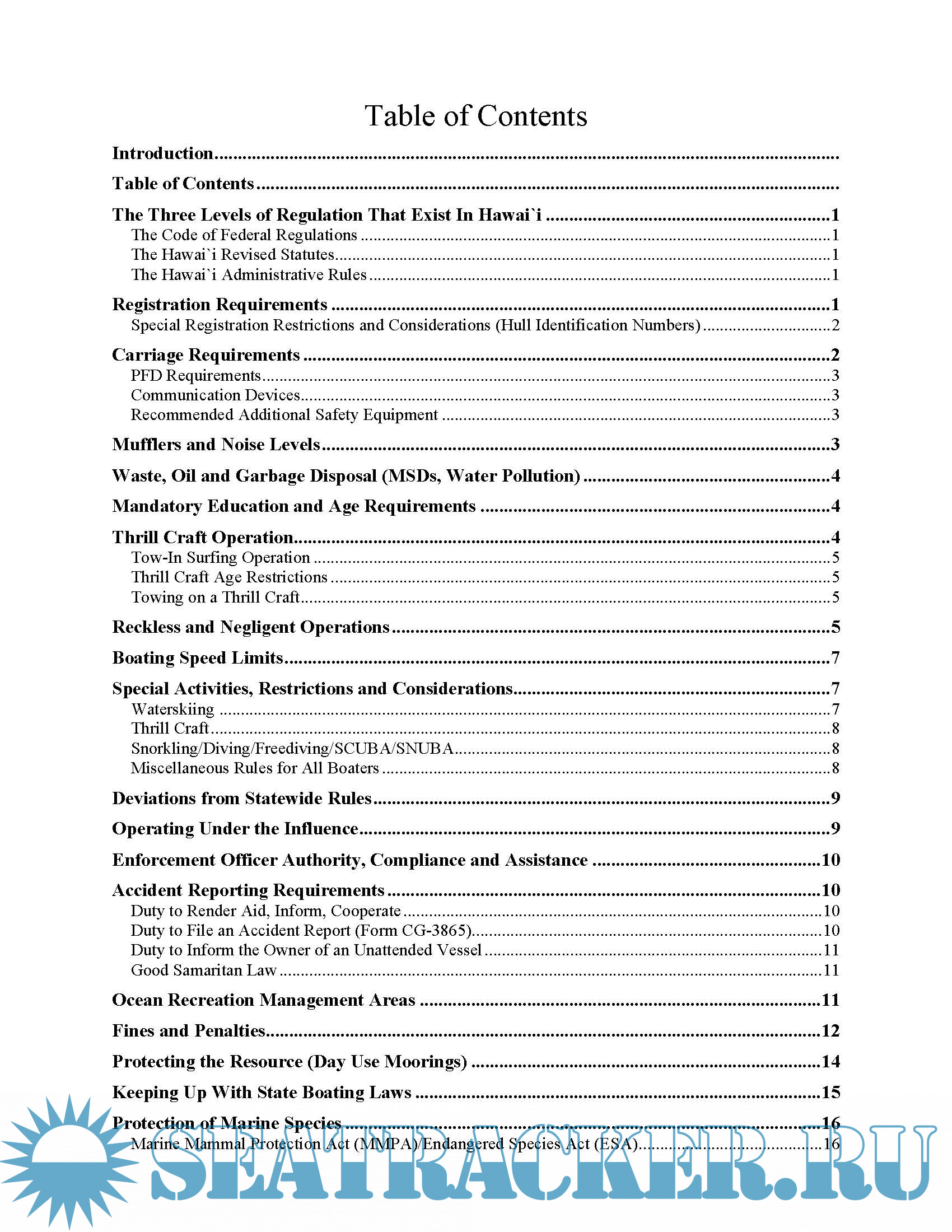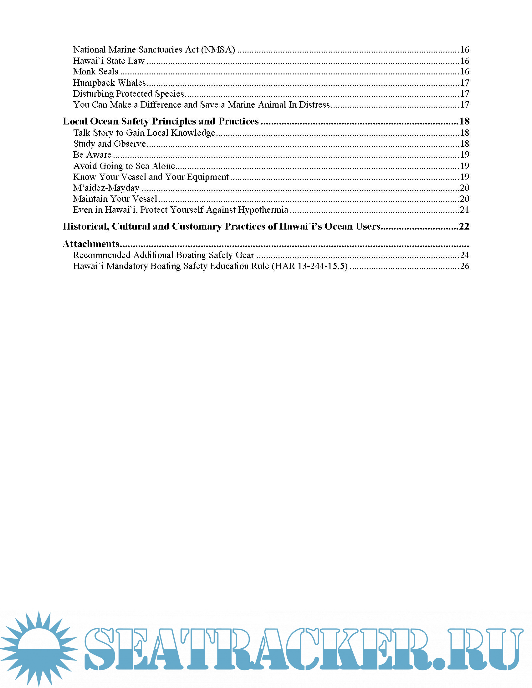 recreational boating in the State waters of Hawai`i. This material is meant to be combined with