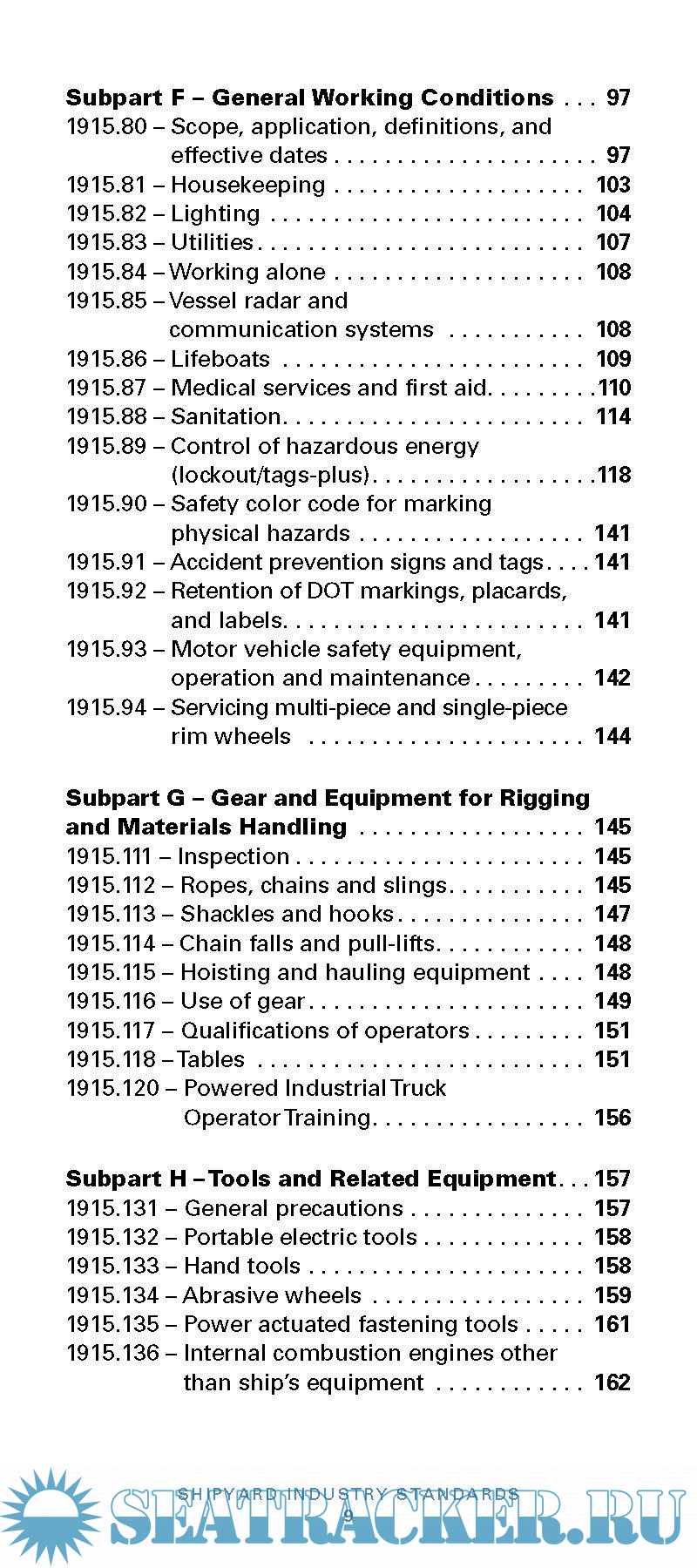 Description: This booklet contains all the safety and health standards specific to the Shipyard Industry contained in Title 29 Code of Federal Regulations (CFR) Part 1915, as of July 1, 2014. Also included are brief discussions of the following: