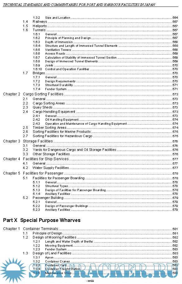 Year: 2002 Language: english Author: The Overseas Coastal Area Development Institute of Japan Genre: Technical book Format: PDF Quality: eBook Pages count: 664 Description: This book is a translation of the major portion of the Technical Standards and Commentaries of Port and Harbour Facilities in Japan (1999 edition) published by the Japan Port and Harbour Association, stipulated by the Ordinance of the Minister of Transport, which was issued in April 1999. The translation covers about two thirds of the Japanese edition.