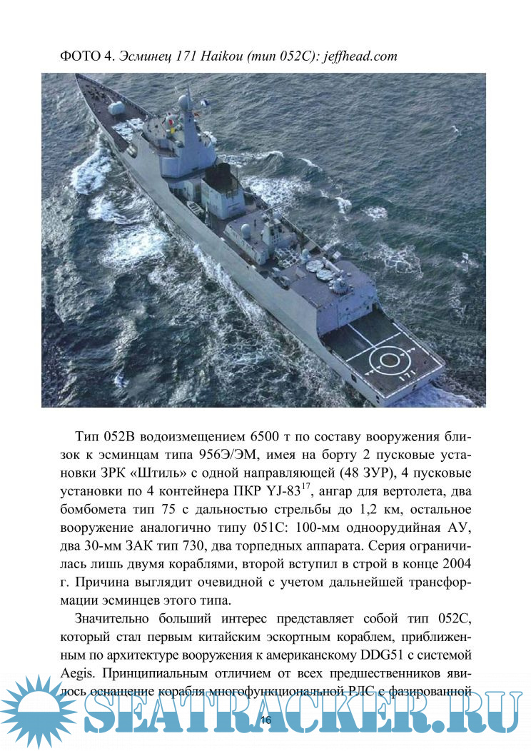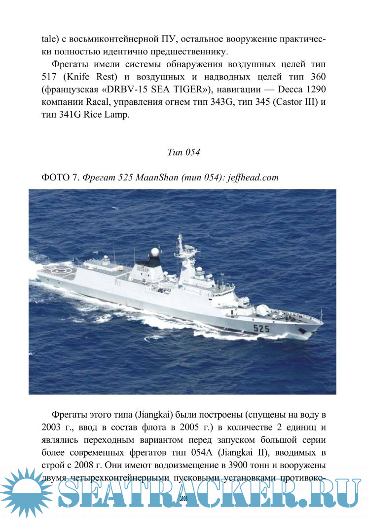 Описание: Последние два десятилетия Китай демонстрирует высокие темпы оснащения своих вооруженных сил новой техникой. Этот процесс сочетает значительные масштабы производства со стремлением обеспечить НОАК современными системами, разработанными на уровне лучших мировых образцов. Одно из главных направлений военного строительства — модернизация флота, что для Китая, в силу его географического положения и особенностей экономического развития, объективно имеет важное значение. Китай в настоящее время является единственной — за исключением США, — страной, реализующей программу достаточно массового, по современным меркам, обновления флота кораблей эскортного класса, оснащаемых различными системами управляемого оружия.