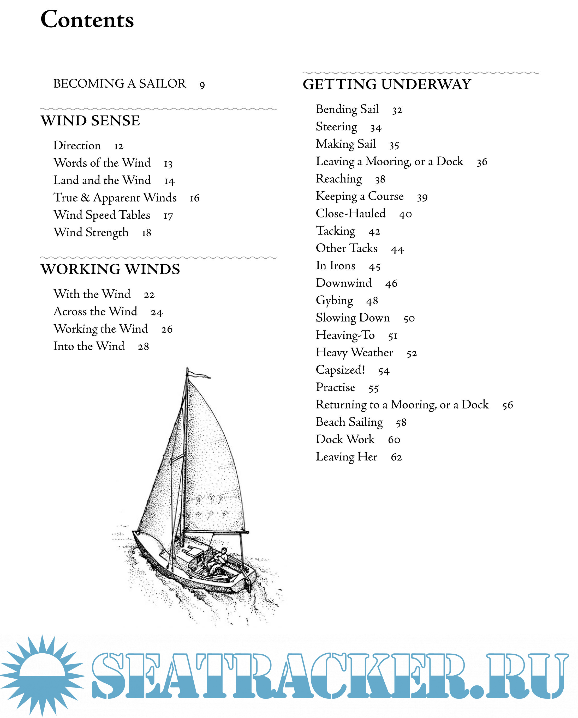 In fact, sailing cannot be considered a precise science and is rather a sort of art. The main content of the publication starts with winds covering the wind strength and speed tables, working winds, true and apparent winds etc. The chapter Getting Underway is dealing with the bending sail, steering and coursekeeping, heaving-to, tacking and all other activities, literally everything the sailor will have to do when underway.
