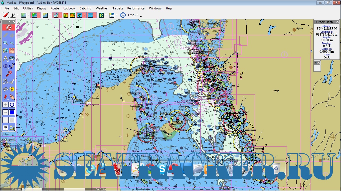 Marine Navigation System, working with raster and vector maps of Mapmedia, Maptech, ARCS, Softcharts, Jeppesen C-Map CM93 v3, as well as 3D depth maps.