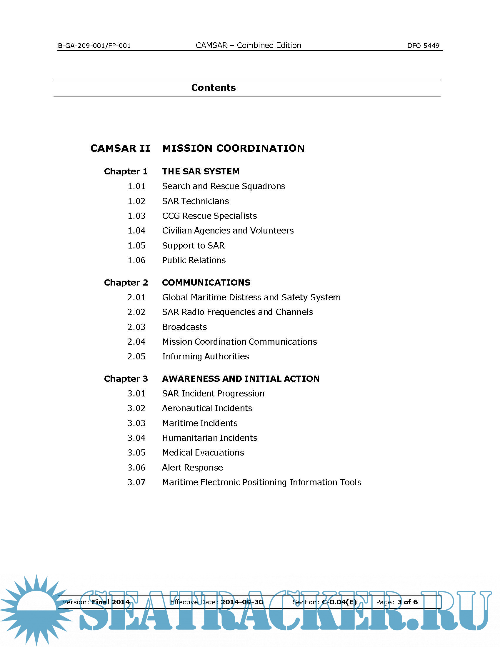 • Volume II – Mission Coordination, called CAMSAR II, and is intended to be used in conjunction with the other two CAMSAR volumes and the IAMSAR Manual, Volume II; and