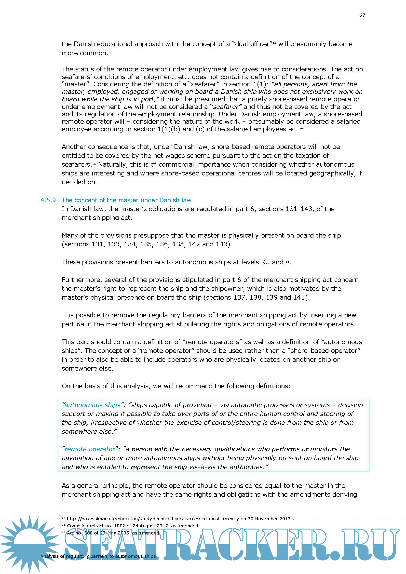 Analysis of Regulatory Barriers to the use of Autonomous Ships