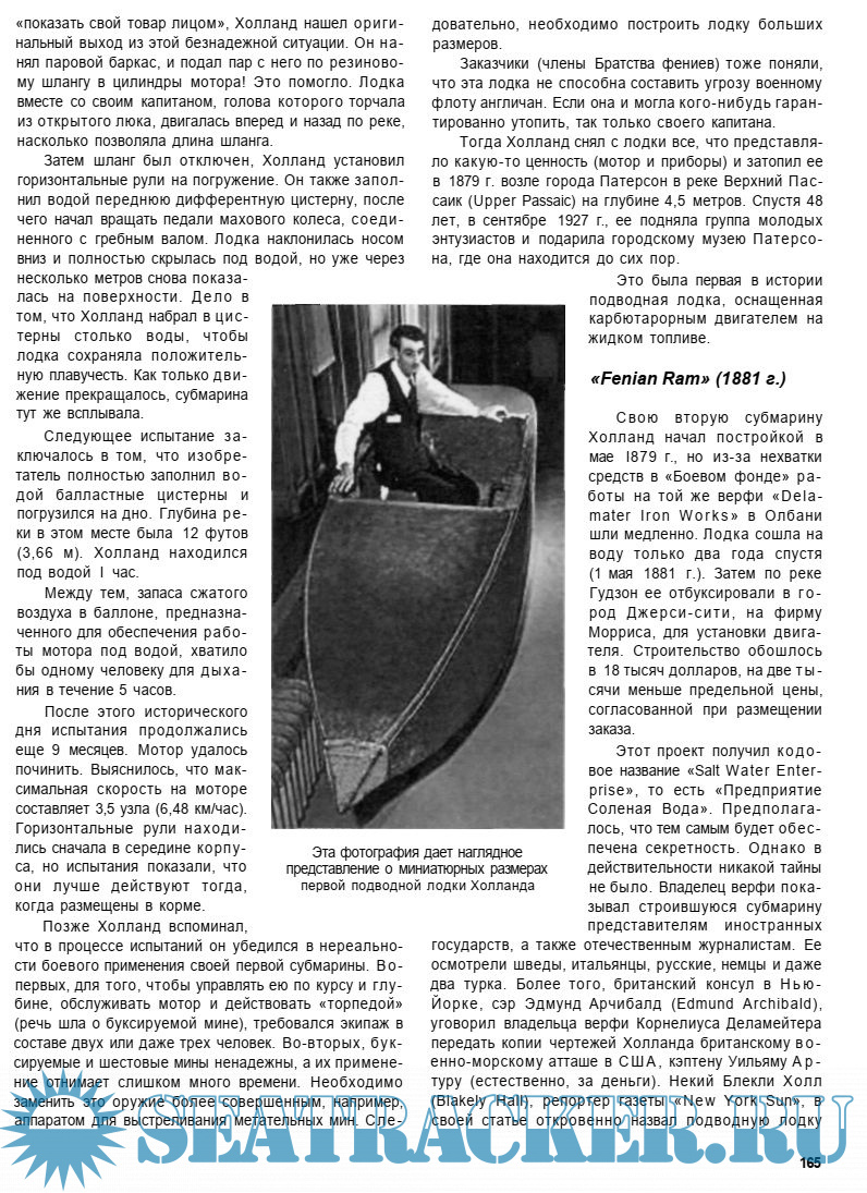 Проект подводной байдарки Холланда (1875 г.)