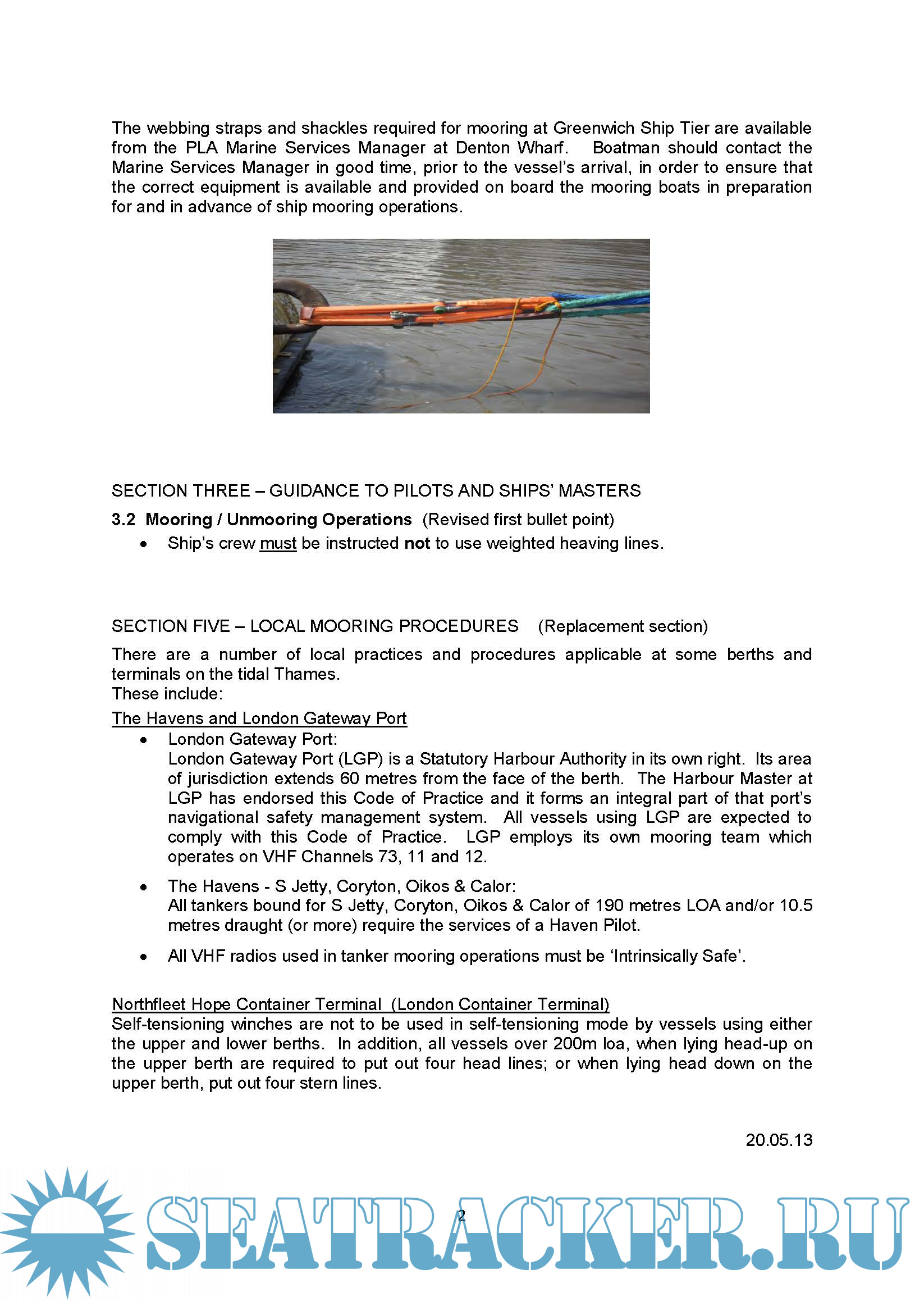 Code of Practice for the Safe mooring of Vessels on the Thames, updated to 2013