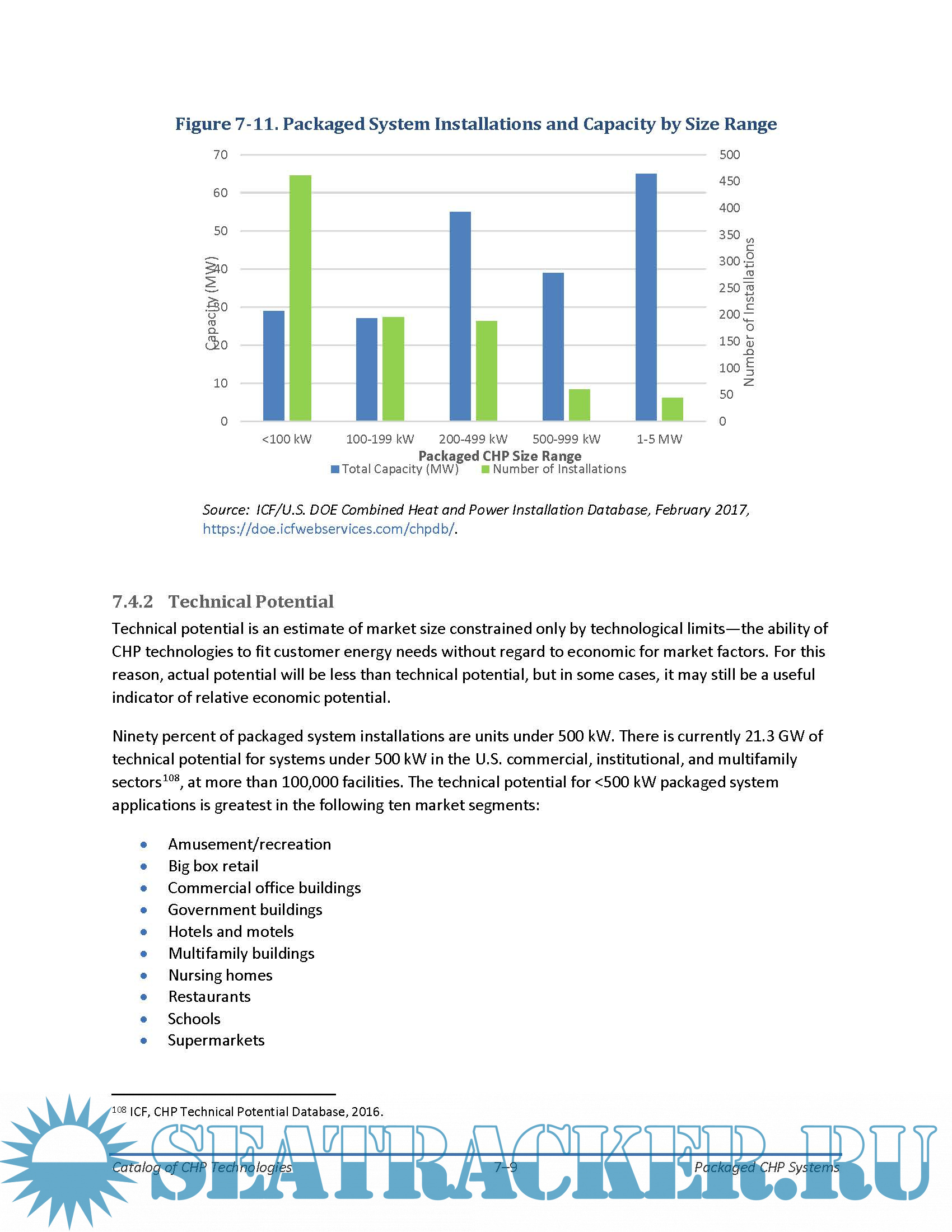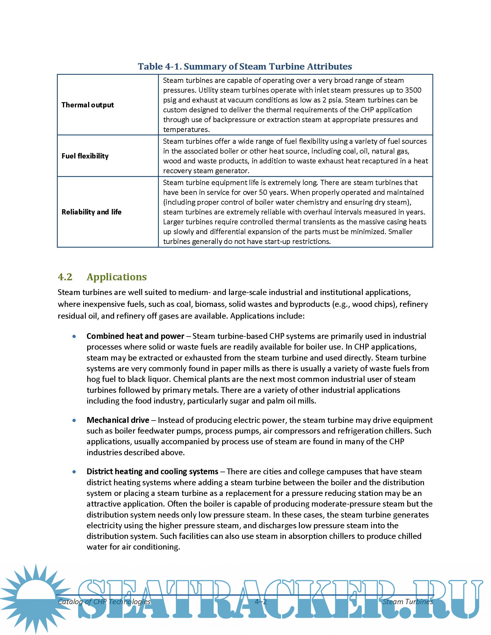 Year: 2017 Language: english Author: U.S. Environmental Protection Agency Combined Heat and Power Partnership Genre: Reference book Format: PDF Quality: eBook Pages count: 150 Description: This report provides an overview of how combined heat and power systems work and the key concepts of efficiency and power-to-heat ratios. It also provides information and performance characteristics of five commercially available CHP prime movers. Combined heat and power (CHP) is an efficient and clean approach to generating electric power and useful thermal energy from a single fuel source. CHP places power production at or near the end-user’s site so that the heat released from power production can be used to meet the user’s thermal requirements while the power generated meets all or a portion of the site electricity needs. Applications with steady demand for electricity and thermal energy are potentially good economic targets for CHP deployment. Industrial applications particularly in industries with continuous processing and high steam requirements are very economic and represent a large share of existing CHP capacity today.