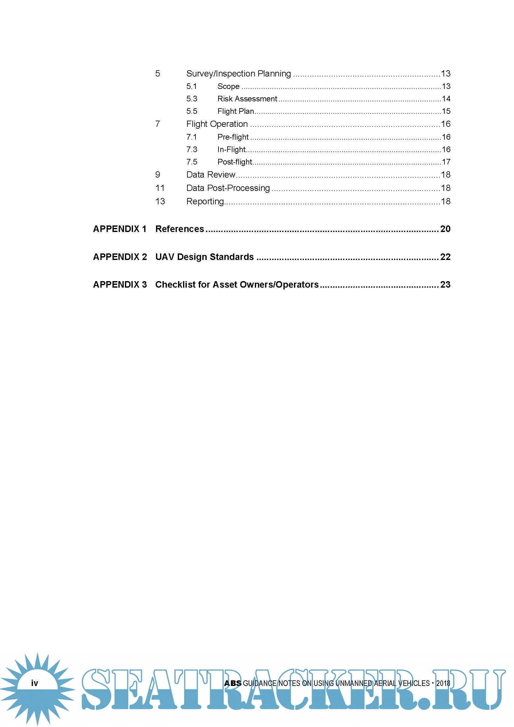 Year: 2018 Language: english Author: ABS Genre: Guide Format: PDF Quality: eBook Pages count: 30 Description: Unmanned Aerial Vehicles (UAVs), as a remote inspection technique, allows the attending Surveyor to evaluate the condition of the structure from a stationary location. This technique also provides a benefit to the asset Owner/Operator by reducing operational intrusiveness. These Guidance Notes are intended to offer best practices for class surveys and non-class inspections carried out using UAVs. These best practices include recommendations and guidance on applications of UAVs, qualification and proficiency of the UAV Service Provider, UAV operation and data handling, all intended to facilitate a safer, more effective and efficient survey. IACS Recommendations No. 42, Guidelines for Use of Remote Inspection Techniques for Surveys, has been considered in the development of these Guidance Notes.