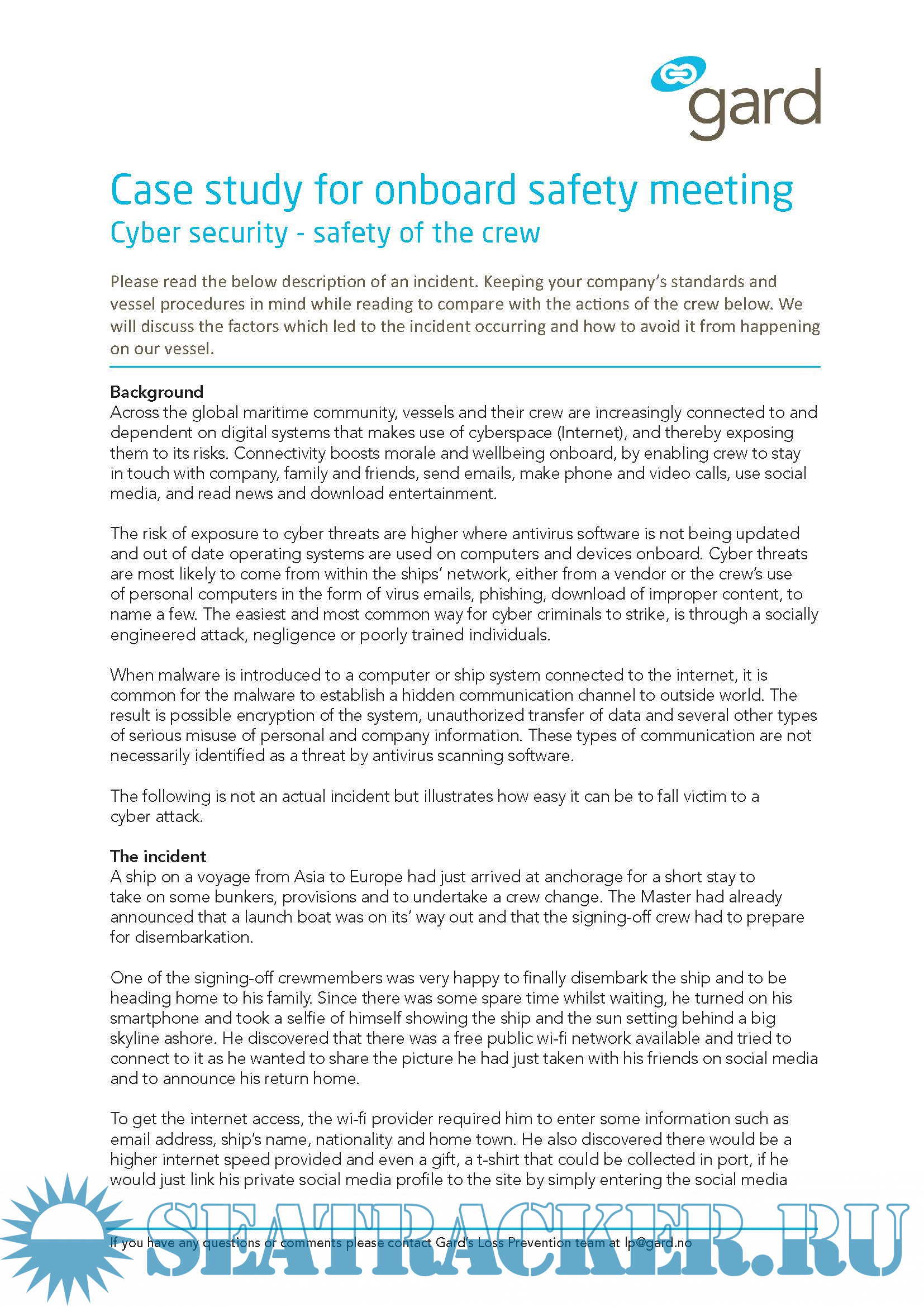 4. Cyber security - safety of the crew, Case study for onboard safety meeting - 3 Pages