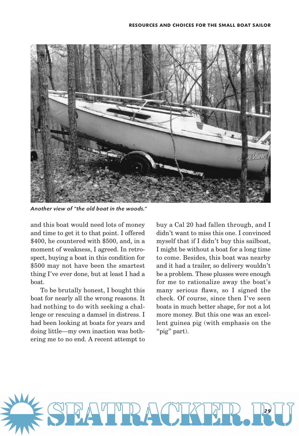 Description: Find a small cruising sailboat and restore it to pristine condition on a budget that won't sink your budget