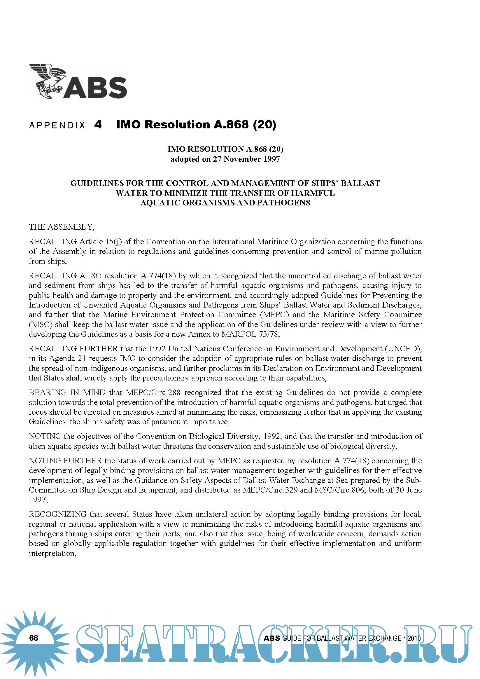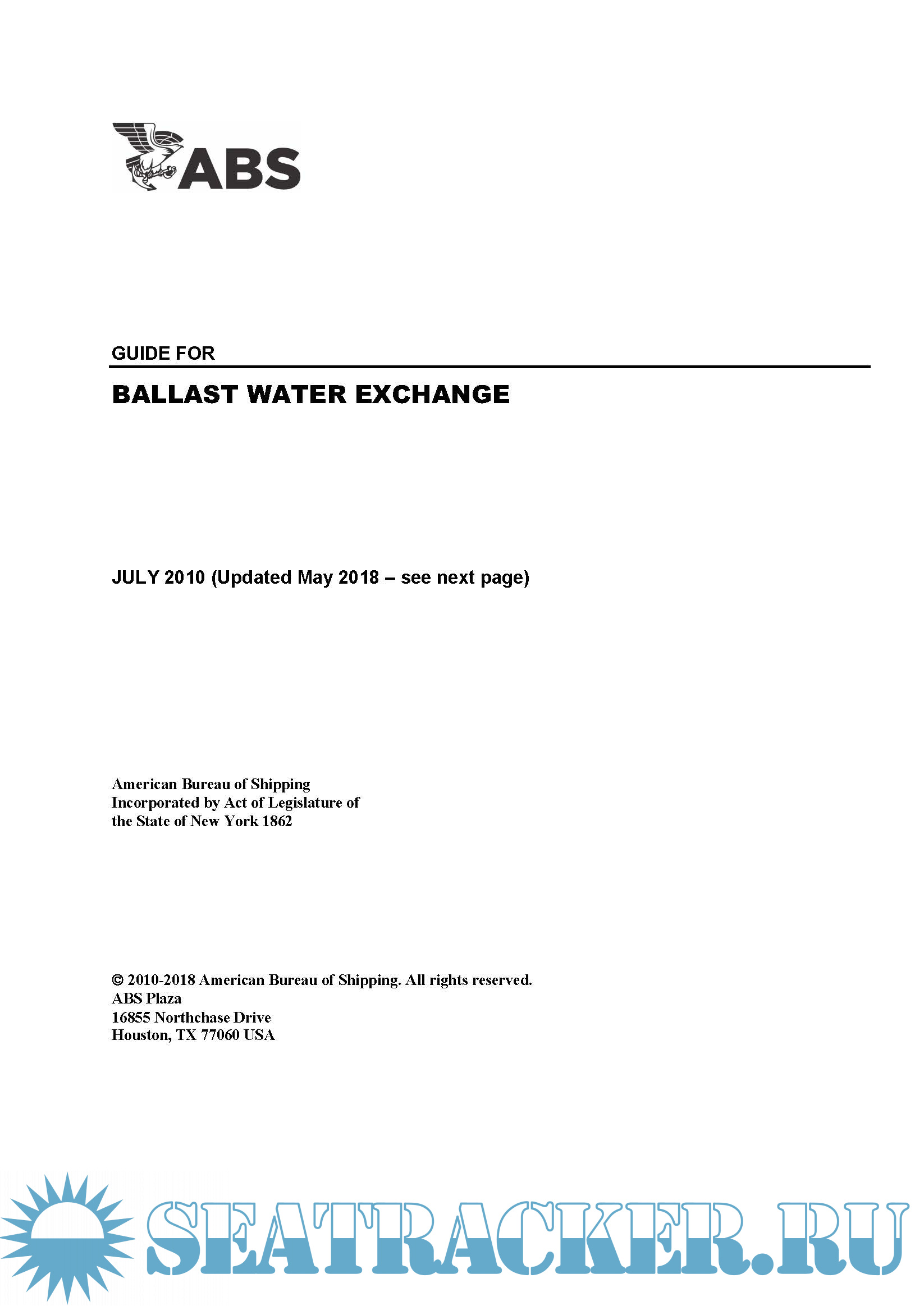 Year: 2018 Language: english Author: ABS Genre: Guide Format: PDF Quality: eBook Pages count: 84 Description: This Guide for Ballast Water Exchange is provided for the use of designers, builders, owners, and operators of vessels classed with ABS and specifies the requirements for obtaining the optional classification notation Ballast Water Exchange (BWE). The BWE notation identifies a level of compliance with the applicable regulations contained in the IMO “International Convention for the Control and Management of Ships’ Ballast Water and Sediments, 2004”, as well as those IMO Guidelines referenced in the Convention addressing ballast water exchange. While the Convention has not yet entered into force, many port States, such as Brazil, Canada and the United States have established national regulations mandating the exchange of ballast water, together with evidence to support that the exchange has taken place (ballast water records). This Guide is to be used in conjunction with other Rules published by ABS and IMO guidelines. Additional info: Updates May 2018 consolidation includes: •February 2016 version plus Notice No. 2 February 2016 consolidation includes: •October 2010 version plus Corrigenda/Editorials October 2010 consolidation includes: •July 2010 version plus Notice No. 1