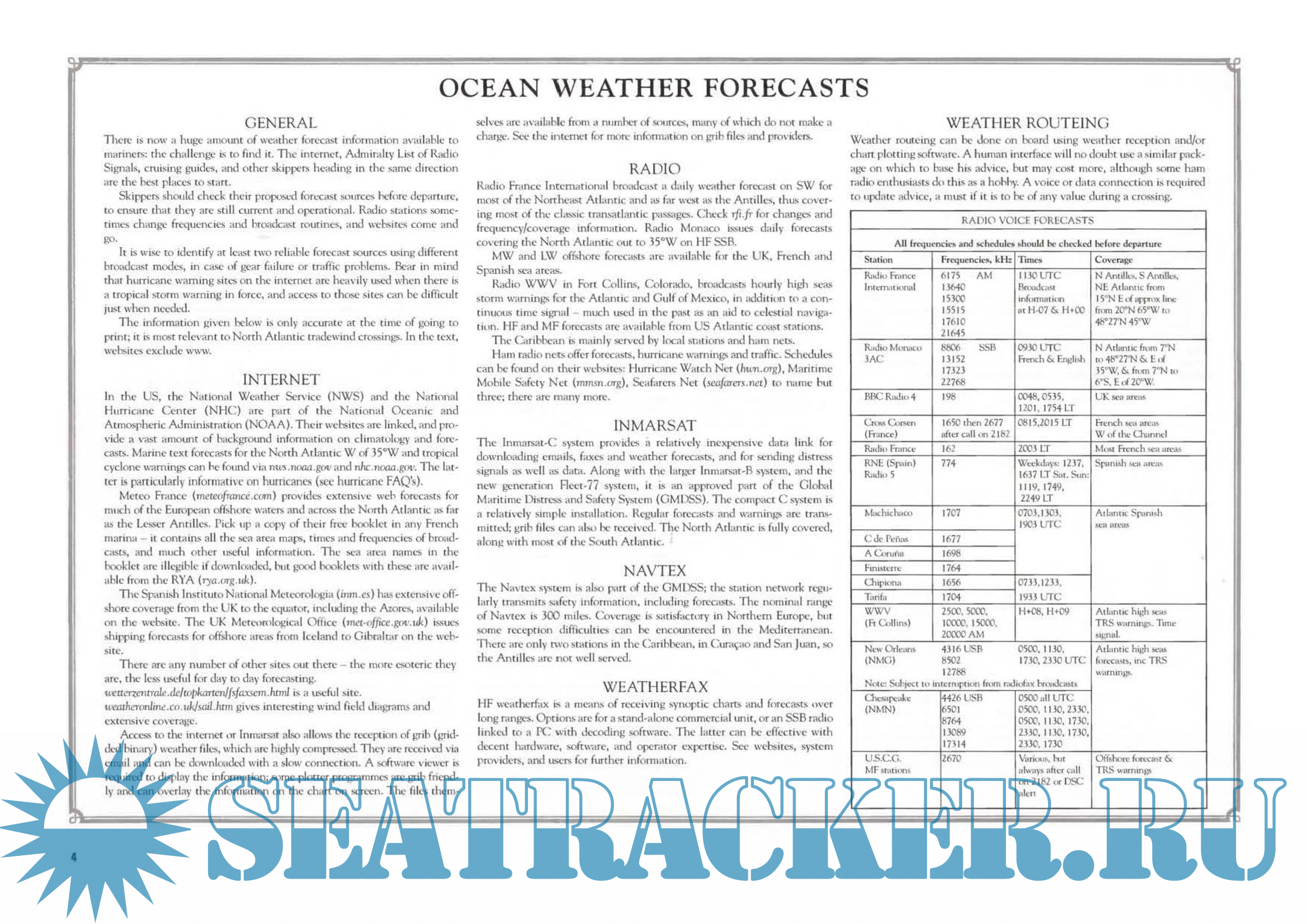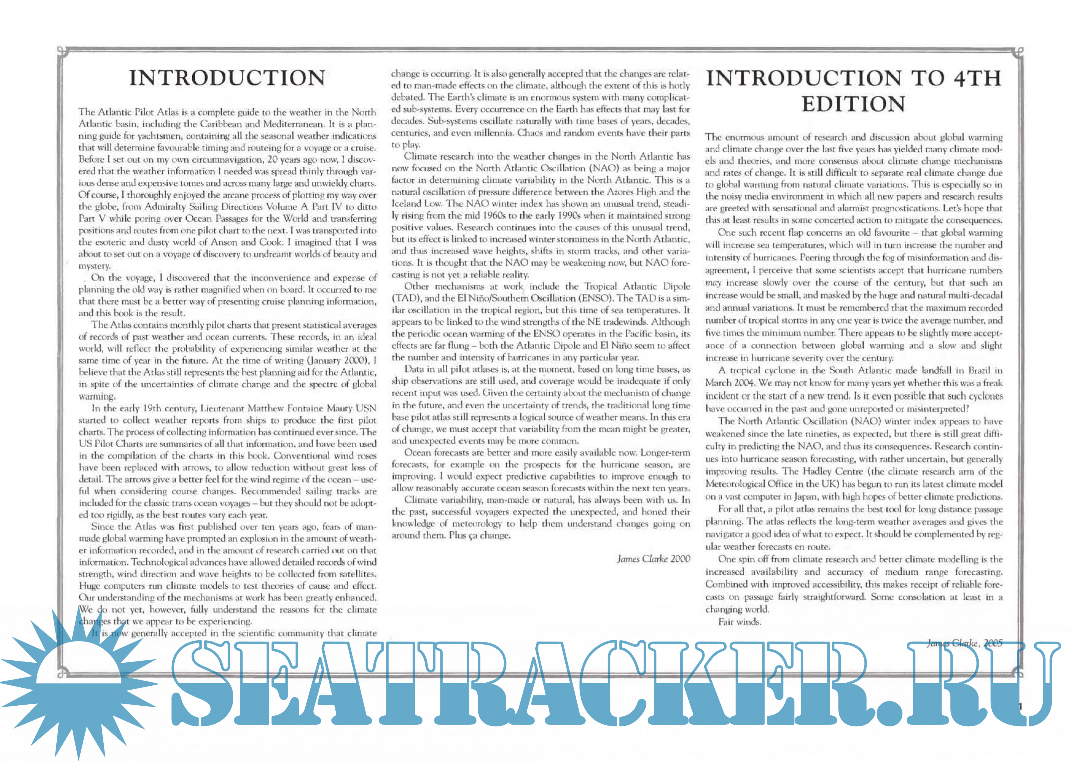 Year: 2005 Language: english Author: James Clarke Genre: Handbook Publisher: ADLARD COLES NAUTICAL London Edition: 4th ISBN: 9781408122471 Format: PDF Quality: eBook Pages count: 81 Description: The Atlantic Pilot Atlas provides a complete guide to the weather of the North and South Atlantic, the Mediterranean and the Caribbean. Now revised for the fifth edition, it includes weather forecasting, global warming and hurricane avoidance information as well as wind and current charts, wave heights, tropical cyclone tracks and shipping routes. Any skipper contemplating an ocean crossing needs to know what conditions he is likely to meet en route, in order to plan a safe and comfortable passage, and this book provides exactly what is needed. 40 specially drawn color charts show detailed information on the winds, currents, gale frequencies, rough sea conditions, hurricane tracks and recommended sailing routes for each month of the year for all these oceans.