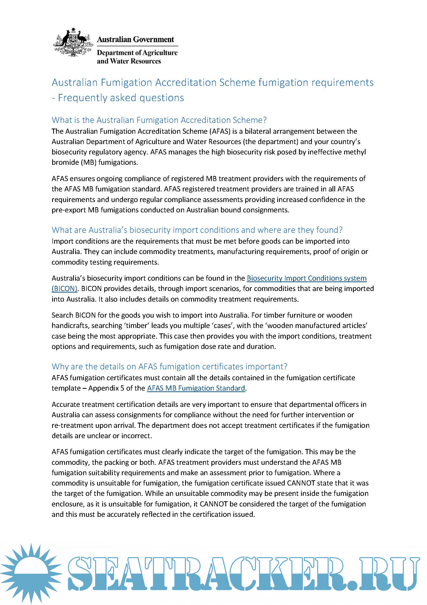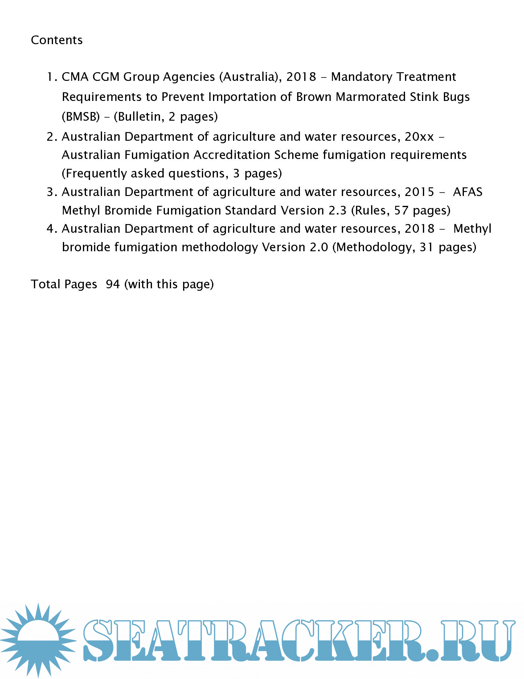 Description: This Download contains Requirements relating to Fumigation in Australia. Refer to contents for complete list.