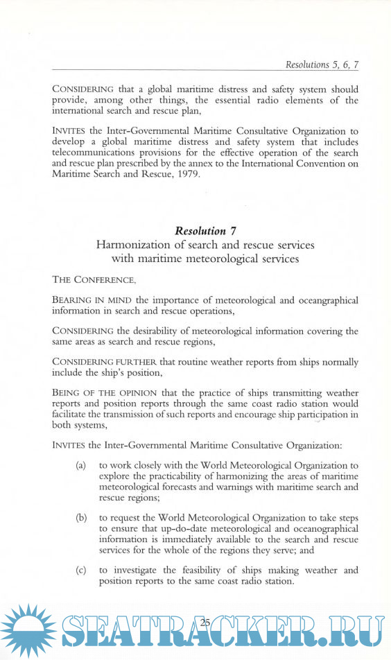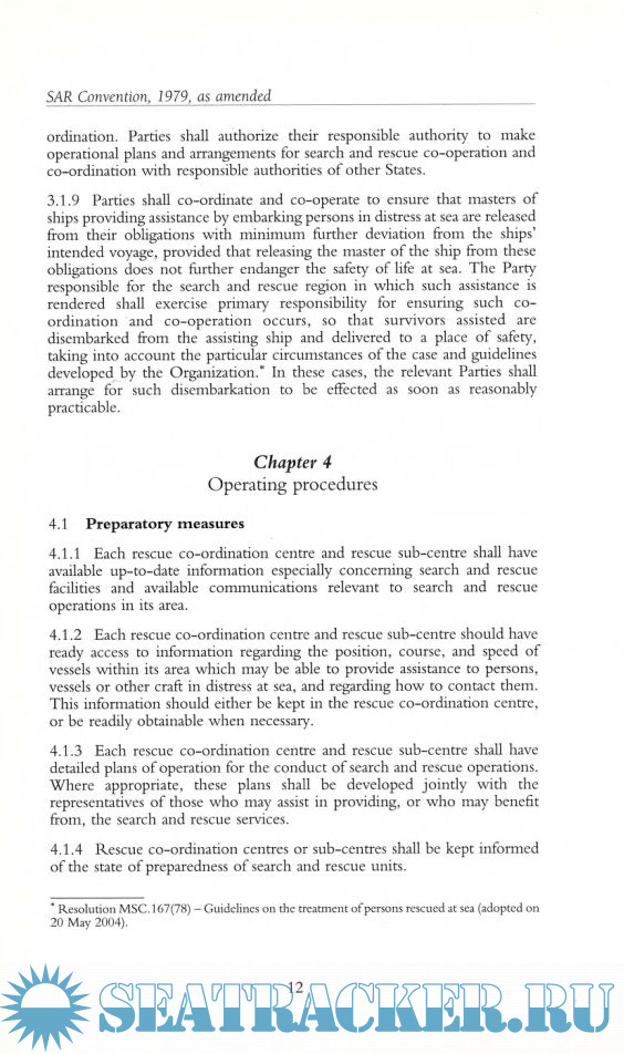 Year: 2006 Language: english Author: IMO Genre: Convention (rules) Publisher: MPG Books Edition: Third edition Format: PDF Quality: Scanned pages Pages count: 31 Description: The International Conference on Maritime Search and Rescue, in April 1979, concerned the establishment of an international maritime search and rescue (SAR) plan covering the needs for ship reporting systems, SAR services and the rescue of persons in distress at sea. Included in the publication are: Final Act of the Conference; International Convention on Maritime Search and Rescue (SAR), 1979; Resolutions adopted by the Conference.