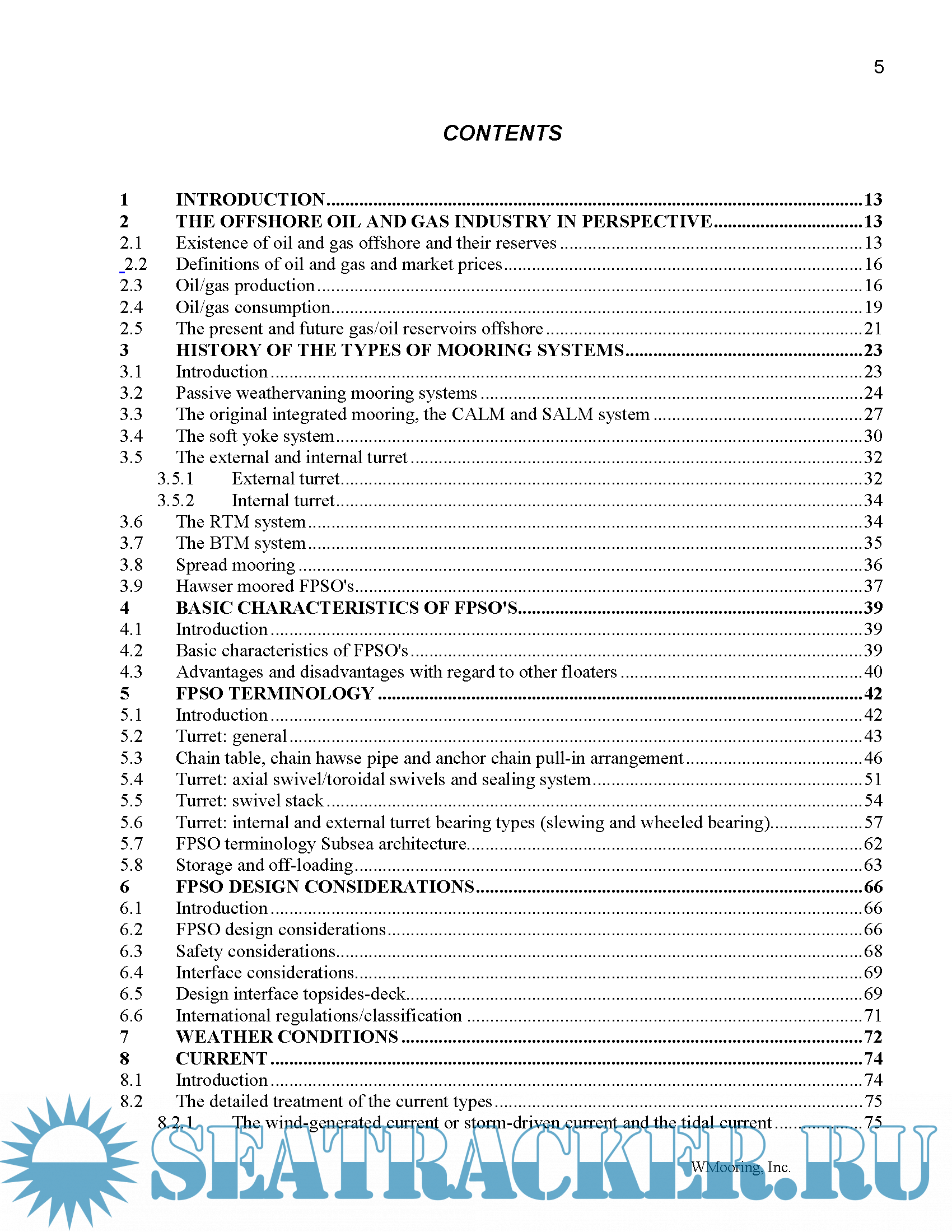 Year: 2013 Language: english Author: Johan Wichers Genre: Handbook Publisher: WMooring, Inc Edition: 1st ISBN: 9781482649758 Format: PDF Quality: OCR without errors Pages count: 456 Description: This book covers many different aspects of single point mooring systems. A single point mooring system is used to keep a vessel stationed at a fixed location. These vessels can for instance be a Floating Production Storage and Offloading System or Floating Storage and offloading system. Hundreds of these systems are operational today. The first part of this book shows a little history of the origins of oil and gas and the current supply and demand for oil. This book also shows some of the history of the development of the single point mooring systems. It also addresses the many different aspects of designing these types of systems. This book will also go into the detail of the hydrodynamics and loadings that act on these vessels by wind and waves and the behaviour of the different types of mooring systems.