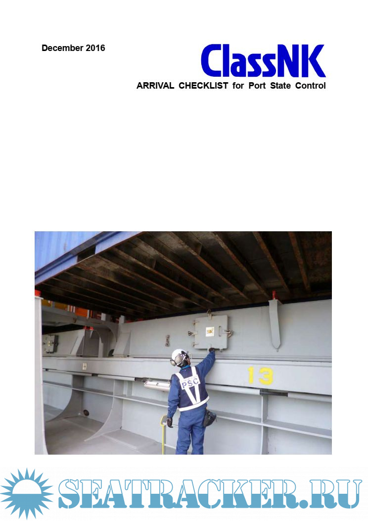 Year: 2016 Language: english Author: ClassNK Genre: Guide Publisher: ClassNK Edition: December 2016 Format: PDF Quality: eBook Pages count: 29 Description: This checklist is based on a statistical analysis and investigation of the deficiencies pointed out by Port State Control officers onboard ships classed by NK. To minimize the risk of your ship being detained by PSC, the checklist should be used by the vessel’s crew prior to arrival into port. The items identified in this checklist focus on areas where deficiencies that have often resulted in PSC detention.
