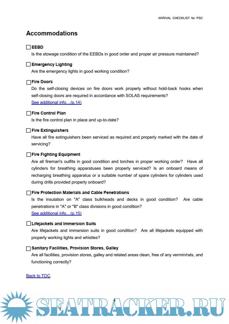 To minimize the risk of your ship being detained by PSC, the checklist should be used by the vessel’s crew prior to arrival into port. The items identified in this checklist focus on areas where deficiencies that have often resulted in PSC detention.