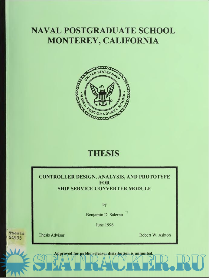 Year: 1996 Language: english Author: Benjamin D. Salerno Genre: Research papers Format: PDF Quality: eBook Pages count: 142 Description: The Navy has invested in an effort to update the ship electrical distribution system for new vessels. The new architecture divides the ship into specific zones containing common energy conversion devices. Rather than the traditional AC distribution, DC will be produced at the source ( a multiphase alternator connected to a controlled rectifier). An integral part of the proposed DC distribution system is the Ship Service Converter Module (SSCM) which acts as a buffer between a main DC bus and a specific zone in the ship. Currently a research effort is underway to make available two Reduced Scale Advanced Development (RSAD) lOOkW SSCMs for testing at the Naval Surface Warfare Center, Annapolis. The Power Laboratory at the Naval Postgraduate School is responsible for delivering two identical prototype controllers based on digital signal processing for the RSAD SSCMs. The focus of this thesis is the design, construction and testing of the prototype controllers. This engineering effort includes the following: the analysis of the performance of various control algorithms through simulation; the refinement of the selected algorithm; the design, assembly, and testing of the controller and its supporting hardware; the development and testing of the software; and the integration and testing of the complete system.