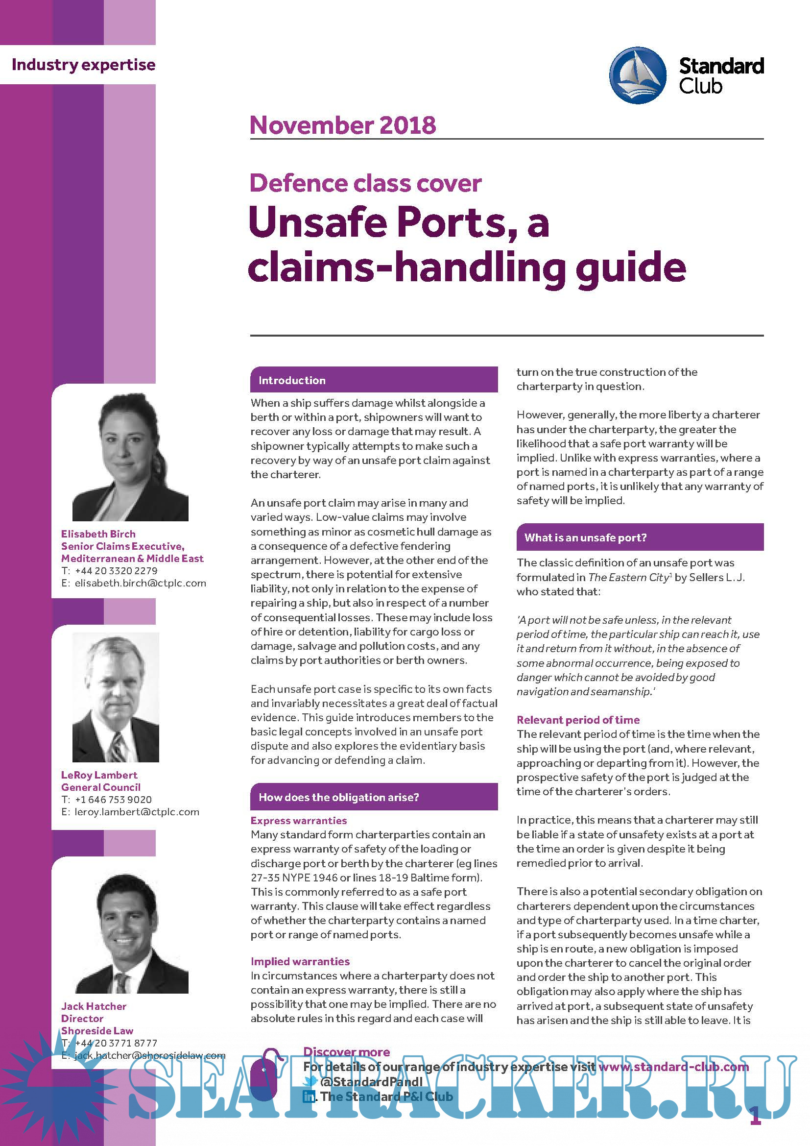 Description: This Download contains Industry expertise from The Standard P&I Club 2018 Bulletins relating to Defense class cover & Contracts of carriage and bills of lading The Hague Visby Rules. For a complete description refer to contents.