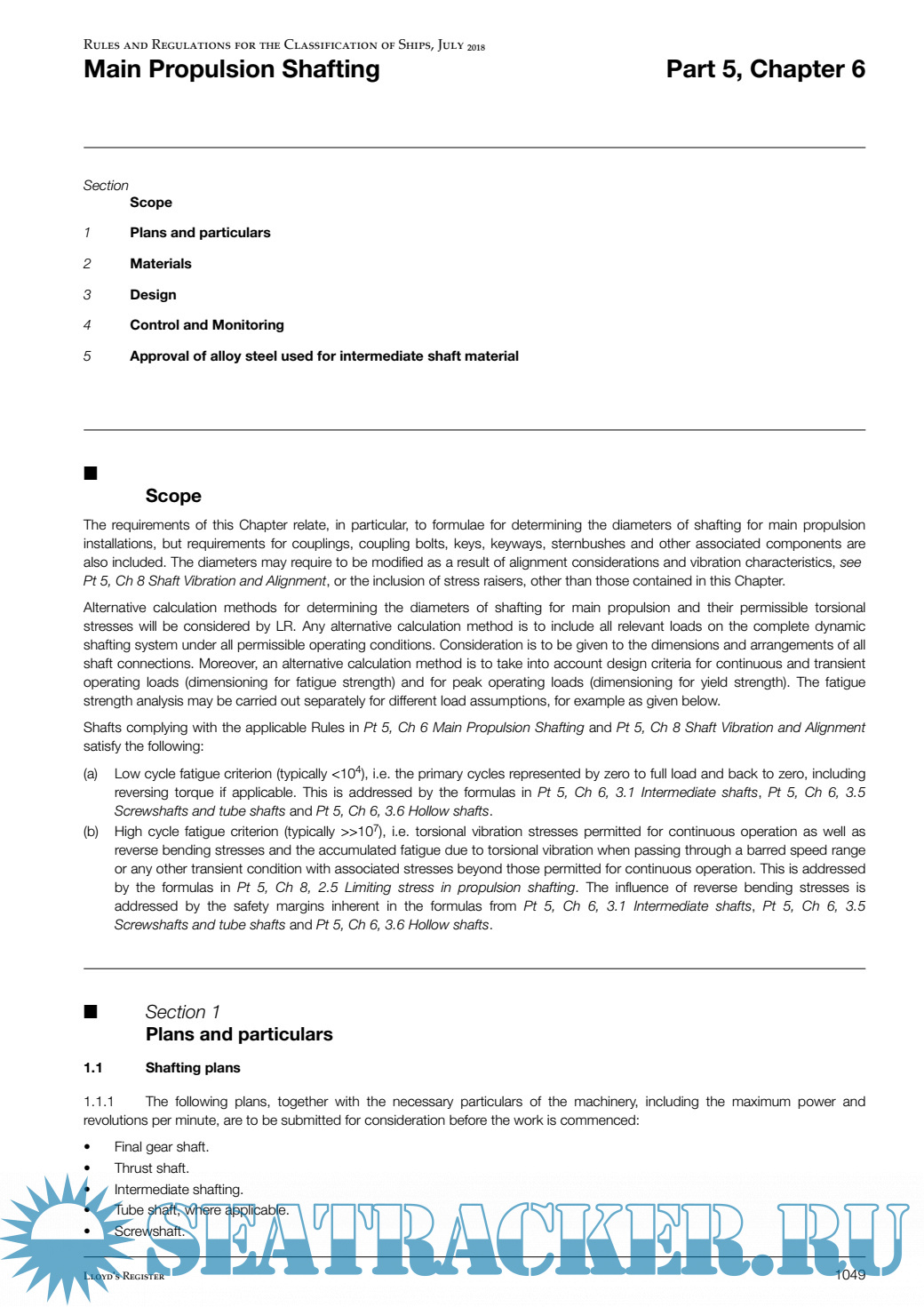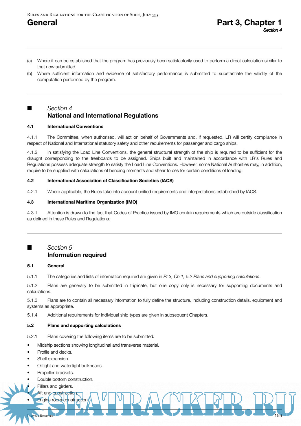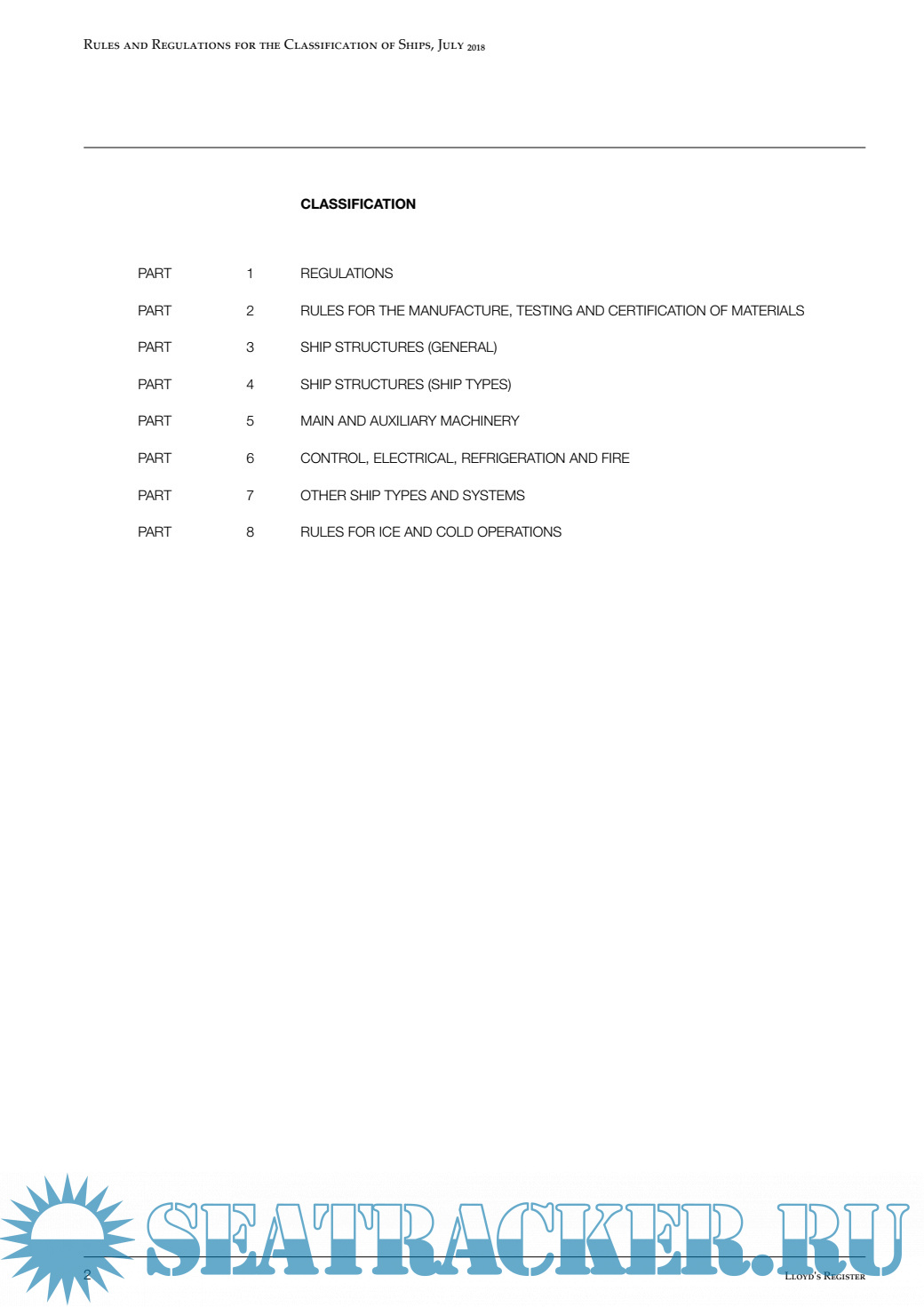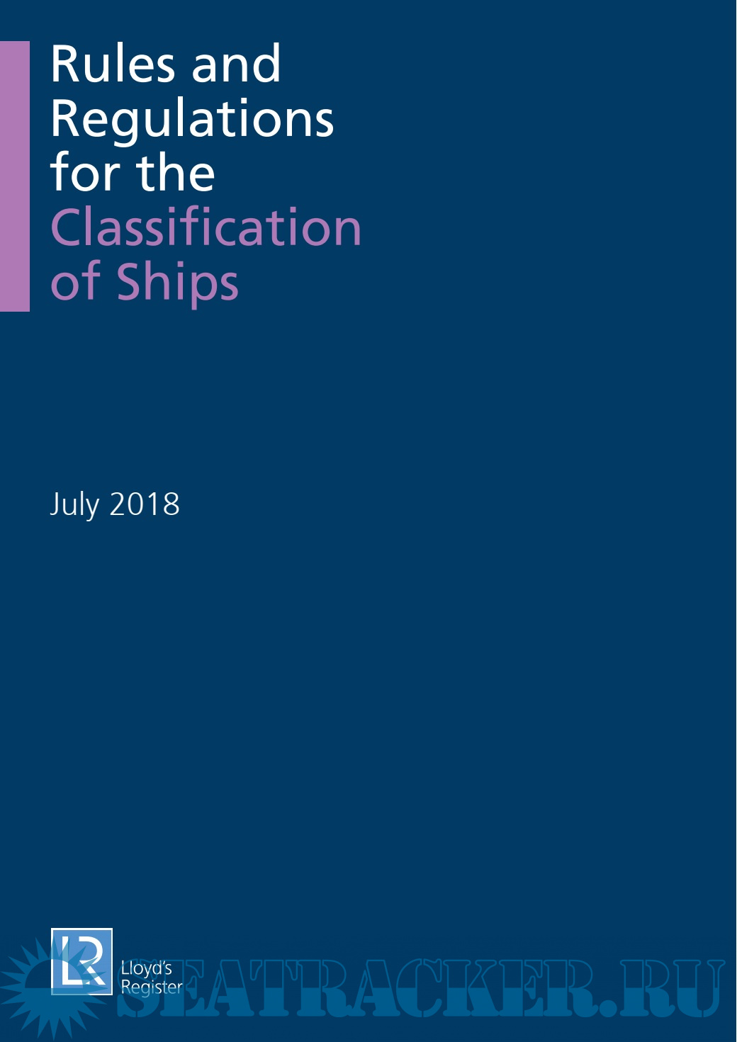 Year: 2018 Language: english Author: Lloyd's Register Format: PDF Quality: eBook Pages count: 1729 Description: The following explanatory note is offered to assist those concerned in the application of these Rules and Regulations. Ship classification may be regarded as the development and worldwide implementation of published Rules and Regulations which, in conjunction with proper care and conduct on the part of the Owner and operator, will provide for: (a) the structural strength of (and where necessary the watertight integrity of) all essential parts of the hull and its appendages; (b) the safety and reliability of the propulsion and steering systems; and (c) the effectiveness of those other features and auxiliary systems which have been built into the ship in order to establish and maintain basic conditions on board whereby appropriate cargoes and personnel can be safely carried whilst the ship is at sea, at anchor, or moored in harbour. Lloyd's Register (LR) maintains these provisions by way of the periodical visits by its Surveyors to the ship as defined in the Regulations in order to ascertain that the vessel currently complies with those Rules and Regulations. Should significant defects become apparent or damages be sustained between the relevant visits by the Surveyors, the Owner and operator are required to inform LR without delay. Similarly any modification which would affect Class must receive prior approval by LR.