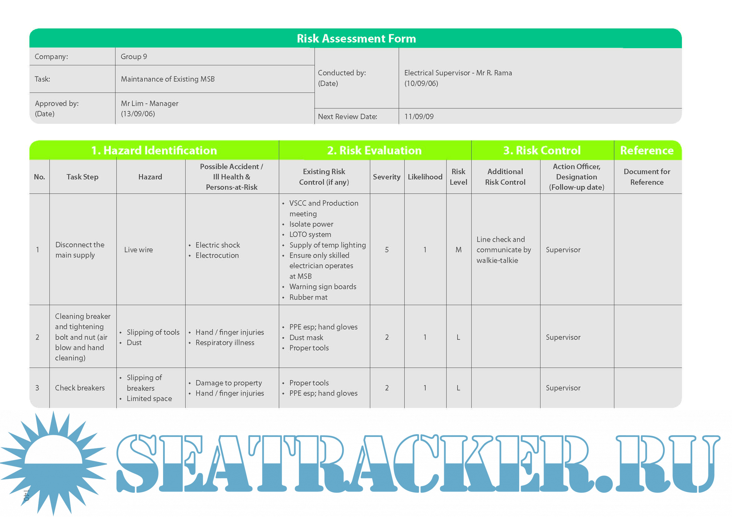 workplace safety and health using a systemic approach. The structure of this manual closely follows that of a typical safety management system based on the Plan-Do-Check-Act (PDCA) continual improvement cycle. Each main section of the manual can be matched to a corresponding clause in the Singapore Standards SS506 on Occupational Safety and Health Management System. The manual starts with a general introduction, reference standards, and terms and definition.