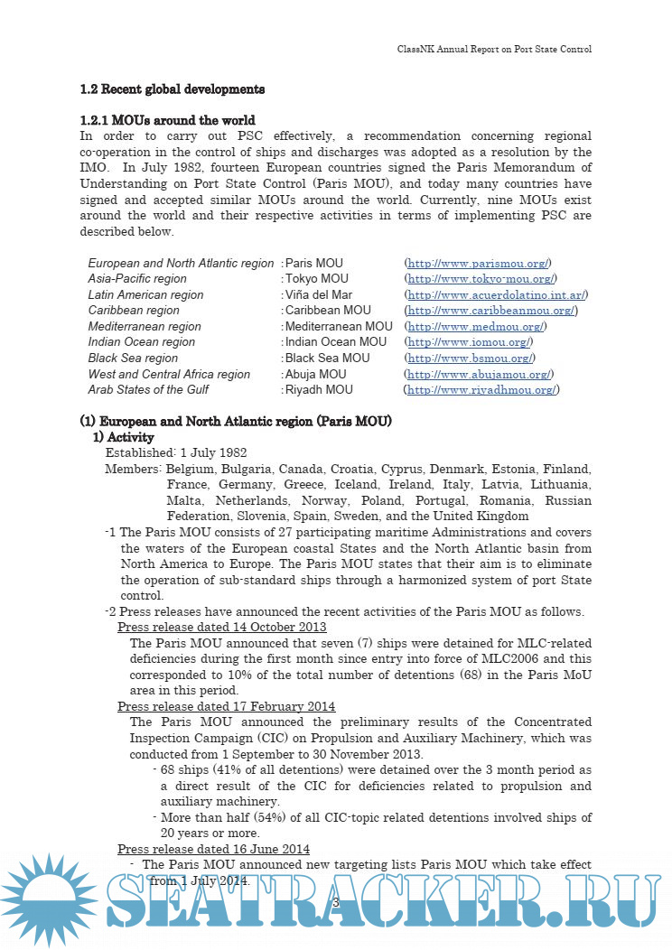 Year: 2014 Language: english Author: ClassNK Genre: Research papers Publisher: ClassNK Format: PDF Quality: eBook Pages count: 69 Description: This annual Port State Control (PSC) report summarizes deficiencies identified by PSC inspections carried out in various countries around the world. This report is prepared withthe objective of building awareness of the present state of PSC as well as to improve future maintenance and inspections, and also Safety Management System is compiled into the regulations.