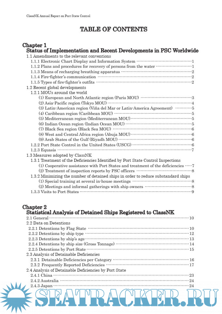 Description: This annual Port State Control (PSC) report summarizes deficiencies identified by PSC inspections carried out in various countries around the world. This report is prepared withthe objective of building awareness of the present state of PSC as well as to improve future maintenance and inspections, and also Safety Management System is compiled into the regulations.